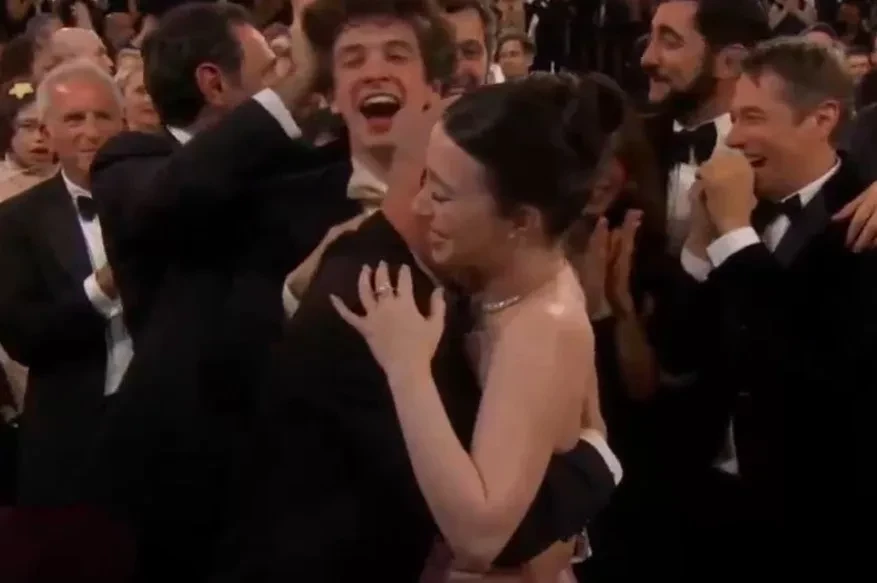 Юра Борисов с женой/Фото: скриншот трансляцииХотя Юра Борисов не получил "Оскар", он и Марк Эйдельштейн радовались за коллегу Майки Мэдисон. Она обошла Деми Мур в категории "Лучшая актриса". Актёры обнимали Мэдисон и поздравляли её с первой наградой в карьере. Также они вышли на сцену во время вручения премии за лучший фильм. После этого весь каст "Аноры" сфотографировался со статуэткой.