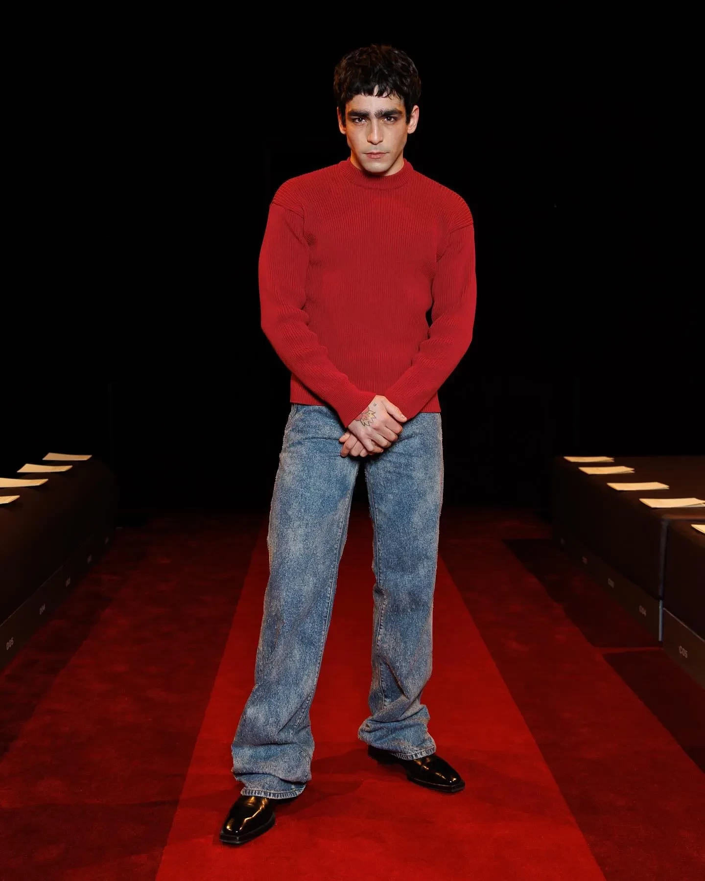 Эд Вествик/Фото: ferraristyle/instagram*Омар Аюсо/Фото: ferraristyle/instagram*Тина Кунаки/Фото: ferraristyle/instagram*Аличе Пагани/Фото: ferraristyle/instagram*Матео Чеккарини и Ева Риккобоно/Фото: ferraristyle/instagram*Элли Туманн/Фото: ferraristyle/instagram*Жан-Карло Леон/Фото: ferraristyle/instagram*Карен Бланчард/Фото: ferraristyle/instagram*Под руководством креативного директора Рокко Янноне бренд представил коллекцию, вдохновлённую динамикой легендарных автомобилей Ferrari. Коллекция открылась с переосмысления делового стиля: серые плиссированные костюмы сочетались с массивными меховыми и верблюжьими пальто и дополнялись галстуками Rosso Corsa. Среди ключевых элементов коллекции — меховые пальто, золотые ткани с бахромой и кожаные аксессуары. Фирменной деталью, возвращающейся из сезона в сезон, стали перчатки — неизменный атрибут поклонников Ferrari.