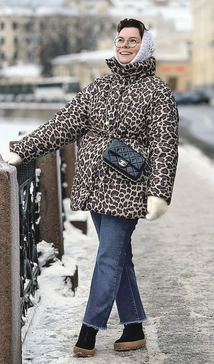 - Думаю, когда Коко Шанель радовалась, что ее вещи «вышли» на улицы, она и представить себе не могла, что ее элегантные, ставшие мировой классикой сумки будут миксовать с вызывающим леопардовым принтом. Сумка такая стоит немалых денег - от 500 тысяч рублей. Татьяна забыла о главном модном правиле: в образе должен быть один яркий акцент. В данном случае можно было сделать таким акцентом леопардовый пуховик и поснимать все «рюши и побрякуши». Ну не сочетается никак леопардовый пуховик с детским вязаным капором, варежками и люксовой сумкой.