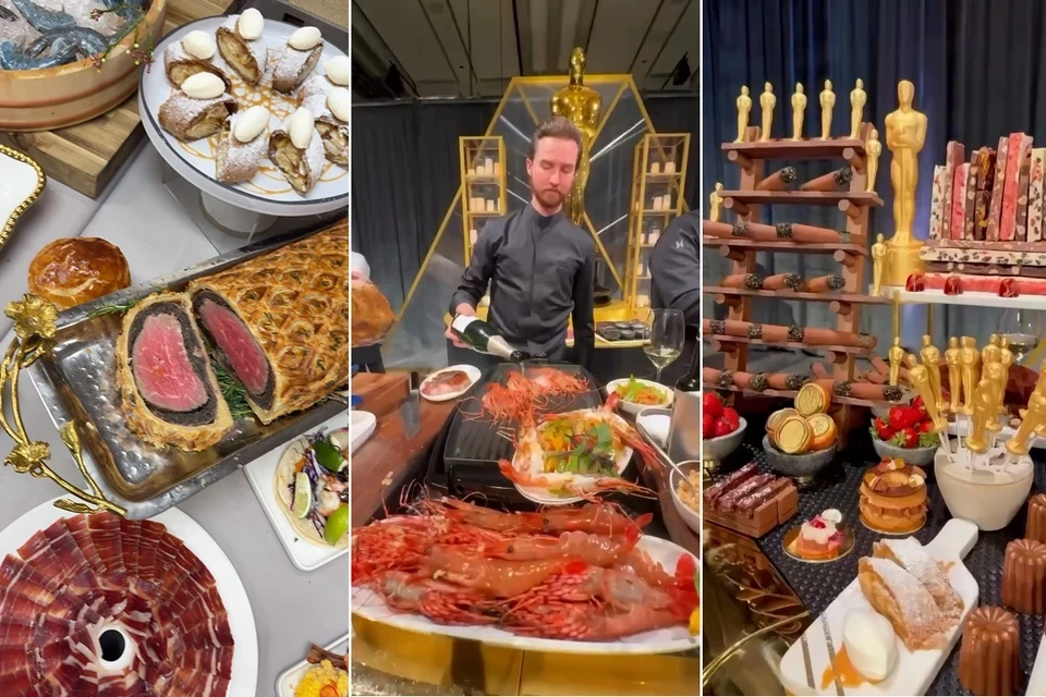 За меню отвечает шеф-повар Вольфганг Пак - в своих соцсетях он поделился блюдами, которыми угощали на оскаровском ужине. Был огромный стол, с которого можно было угощаться. Выдержки из меню.