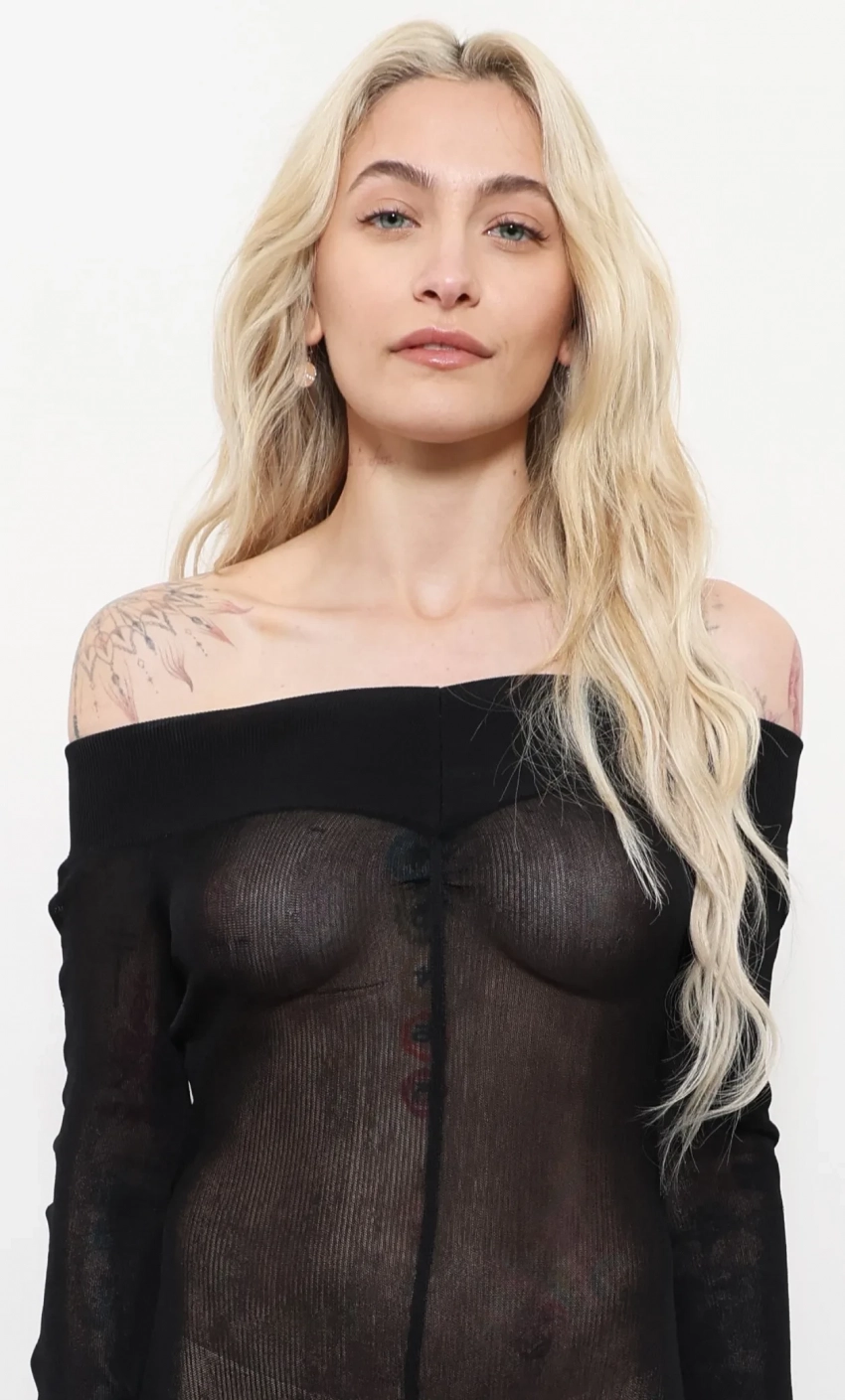 Дочь Майкла Джексона Пэрис пришла на показ новой коллекции Stella McCartney в прозрачном платье, под которым, как теперь принято у многих знаменитостей, не было нижнего белья. 26-летняя Пэрис выбрала для мероприятия чёрное платье макси с открытыми плечами. Образ она дополнила маленькой чёрной сумочкой.
