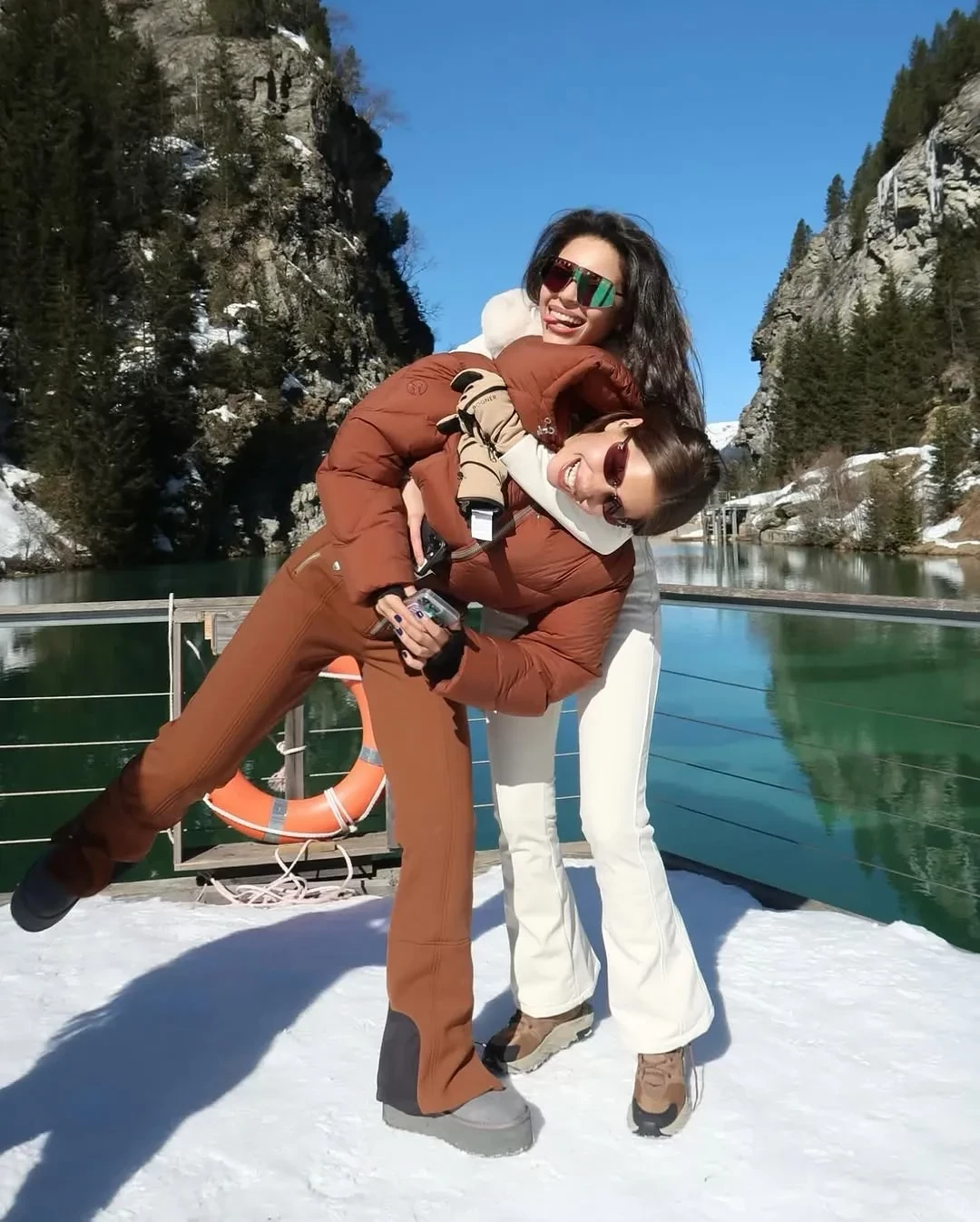 Сёстры Манасир прогулялись до озера La Rosiere и сделали несколько фото на память на фоне местного пейзажа. На кадрах 25-летняя Диана и 21-летняя Дана позируют в горнолыжных костюмах и солнцезащитных очках (у Даны от Chanel). "Впечатления от этого места каждый раз, как в первый!", — написала Диана. Её младшая сестра добавила: "Счастлива".