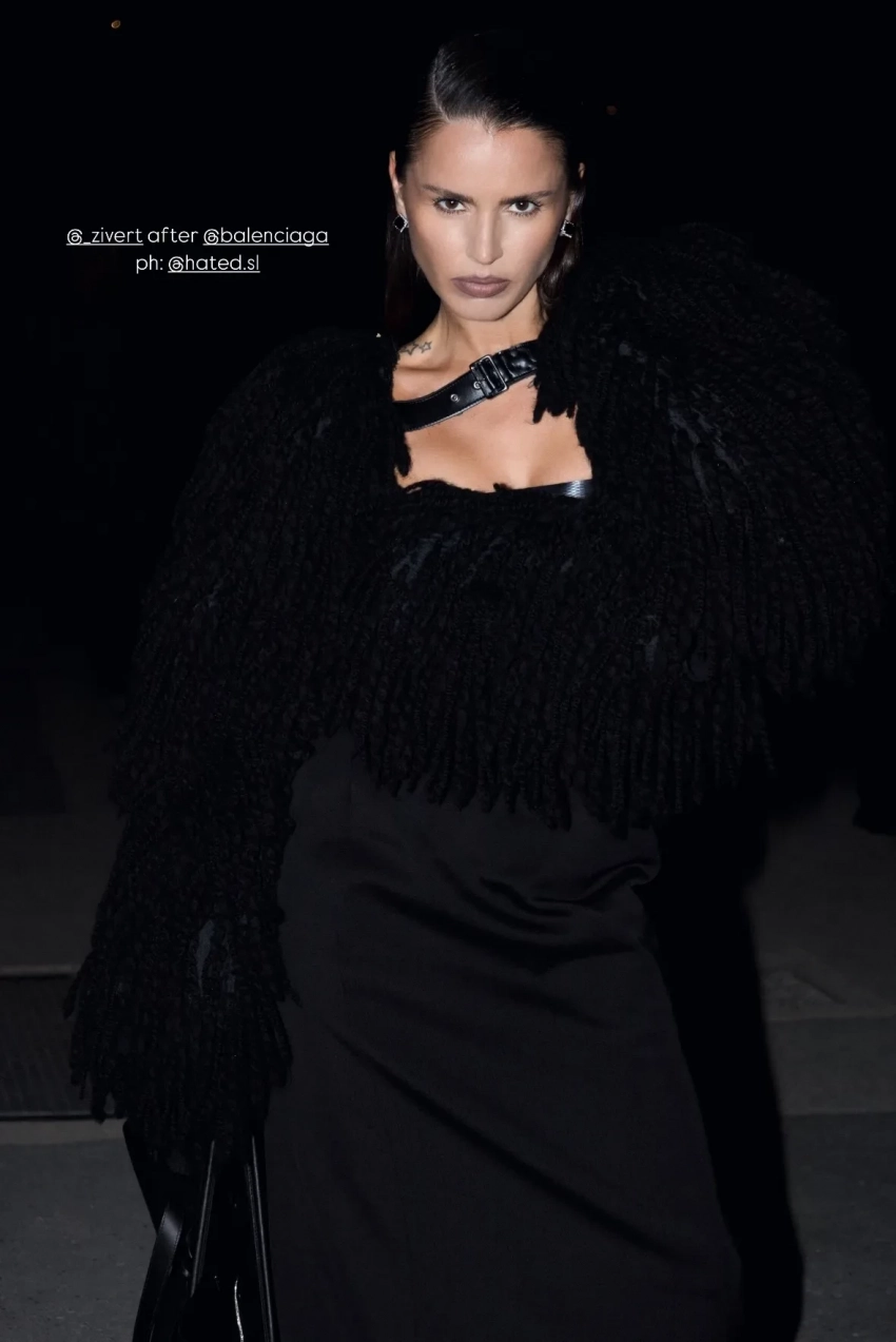 В рамках Недели моды в Париже прошёл показ новой коллекции модного дома Balenciaga. В первом ряду собрались мировые селебрити и друзья креативного директора бренда Демны Гвасалии. Среди них: Рената Литвинова, Марк Эйдельштейн с братом Матвеем, Джессика Альба, Алессандра Амбросио, Сара Мишель Геллар, Виттория Черетти, Барбара Палвин, Ромео Бекхэм, Габриетт, Елена Перминова, которая пришла без бойфренда, но с подругой, девушкой миллиардера Владислава Доронина Кристиной Романовой, Ольга Карпуть в платье со шнуровкой на спине, певица Zivert, которую ранее раскритиковали за появление на Неделе моды, Оксана Бондаренко, Тайра Бэнкс и другие.