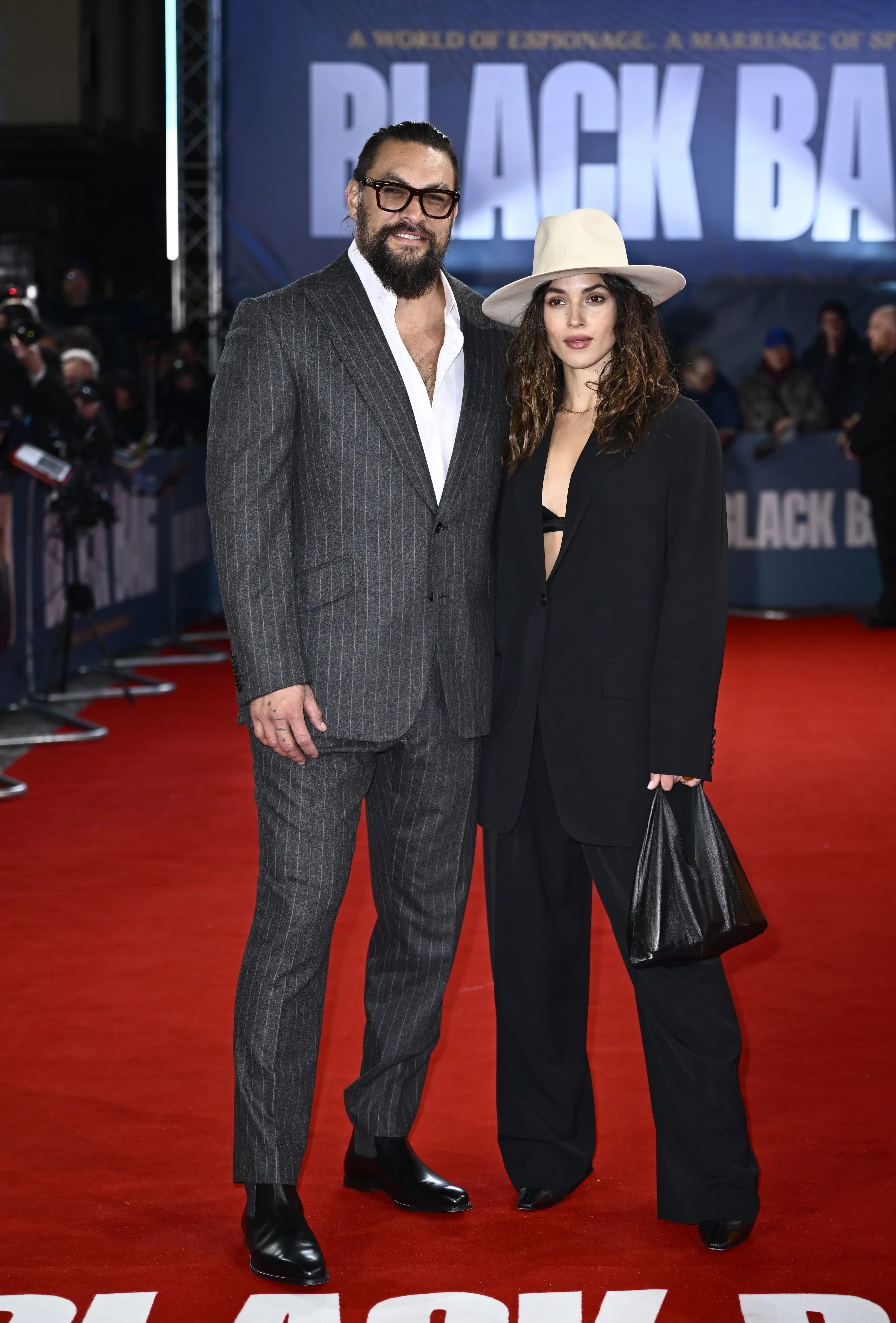 Момоа выбрал для мероприятия серый костюм в полоску, а 32-летняя Адриа надела тёмный костюм, дополнив образ чёрной сумкой и белой шляпой.