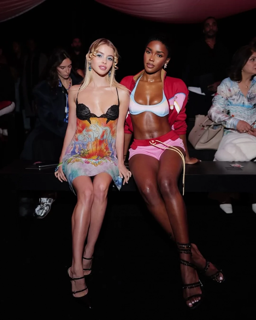Елена Перминова вместе с подругой, девушкой миллиардера Владислава Доронина Кристиной Романовой, сходили на шоу Balenciaga и Nina Ricci. Романова также была среди гостей на показе Alaia. Блогерша Алла Брулетова тоже прилетела в Париж: она успела сделать фото с огромным круассаном, попозировать на полу местного туалета и сходить на показ Casablanca, на котором прошлась модель из Омска Крис Грикайте.