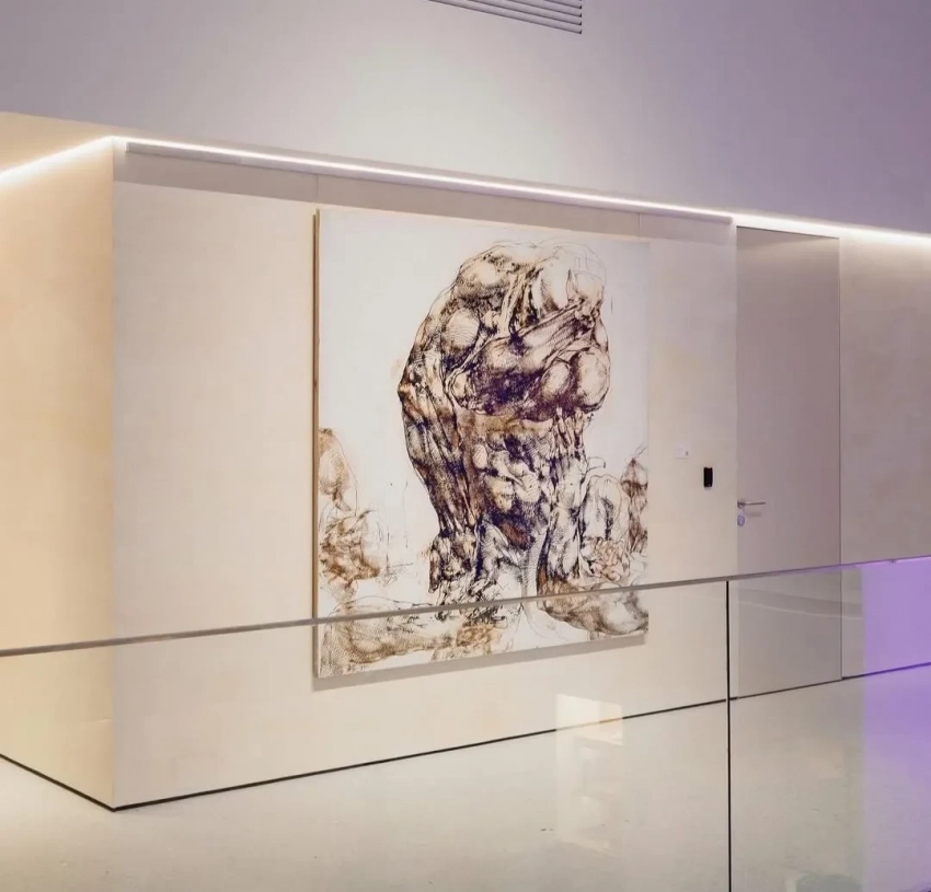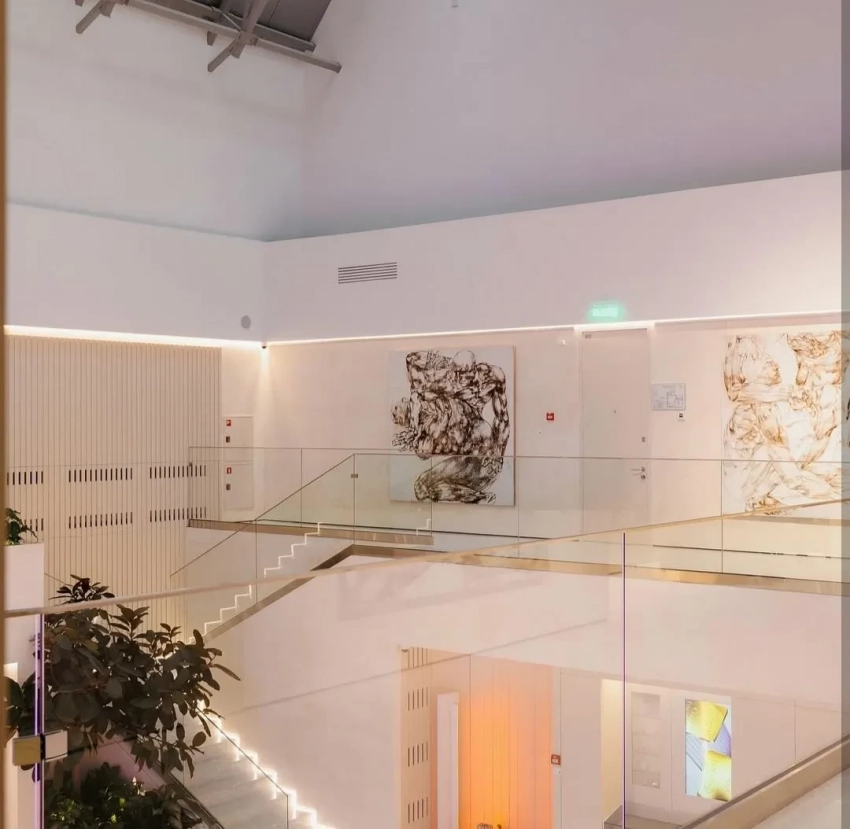 49-летний Константин Богомолов посетил открытие обновлённого офиса СберПервого на Сретенке. В своих соцсетях он рассказал о неожиданном решении оформить офис картинами современных художников, предоставленных галереями 11.12 Gallery и a-s -t-r-a.