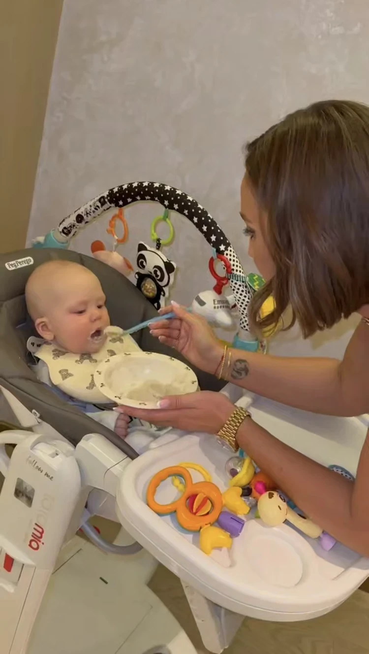 Теперь же телеведущая наведалась в гости к своему крестнику, подержала малыша на ручках и даже покормила его с ложечки.