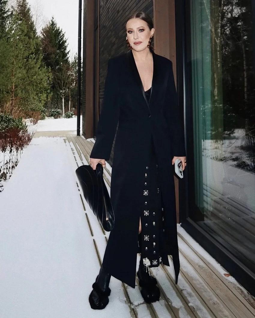 Ксения Собчак пришла на показ в пальто и обуви Ruban, юбке Prada и с сумкой Alaia. Компанию ведущей в первом ряду составила Zivert, появление которой на недавней Неделей моды в Париже не понравилось стилисту Михаилу Барышникову и спровоцировало микроскандал в телеграме. "Сидим с Zivert на показе Ruban. Пока никто не прогоняет. Миши Барышникова не видать", — пошутила Ксения в соцсетях. Cтилист ответил, что он "застрял в Париже" и "благословляет" певицу на моду.