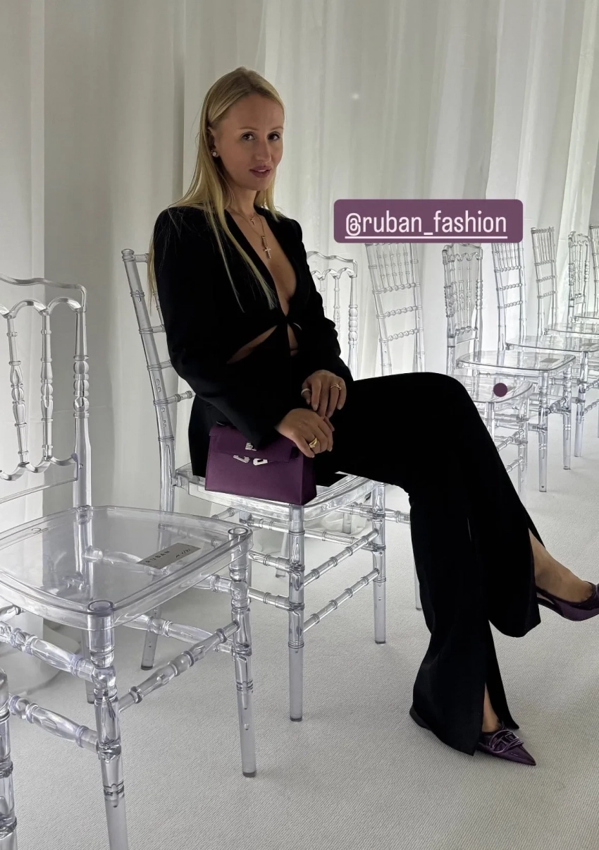 Оксана Рим (в первом ряду) на показе Ruban осень-зима — 2025https://t.me/spletnikru2024/26922Показ осенней коллекции Ruban открыла дочь соосновательницы бренда Алисы Рубан Петра, а постановкой занимался Артём Кривда. Модели дефилировали в объёмных свитерах, платьях с асимметричным кроем, пальто с перьями и шубах-кейпах, полупрозрачных юбках, гольфах со штрипками и меховых вьетнамках. Также гости отметили яркий макияж и педикюр моделей.
