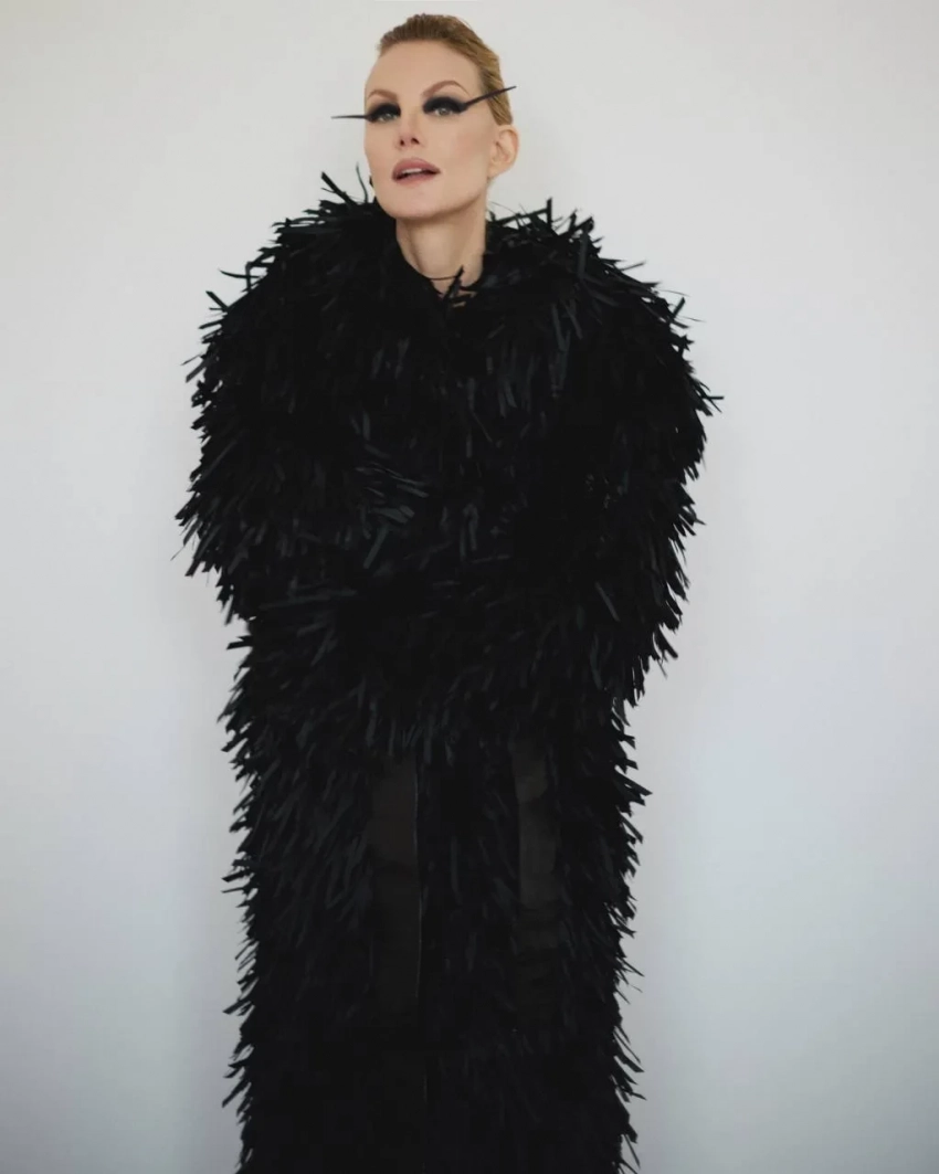 Рената Литвинова показала кадры новой фэшн-съёмки, на которых она позирует в чёрной шубе Viva Vox и с длинными "стрелками". В посте 58-летняя актриса и режиссёр заявила, что не считает себя модной, хотя Литвинова известна своей близкой дружбой с бывшим креативным директором Balenciaga и новым креативным директором Gucci Демной Гвасалией и любовью к модной индустрии: она часто ходит на модные показы, сама принимает в них участие и носит кутюр.