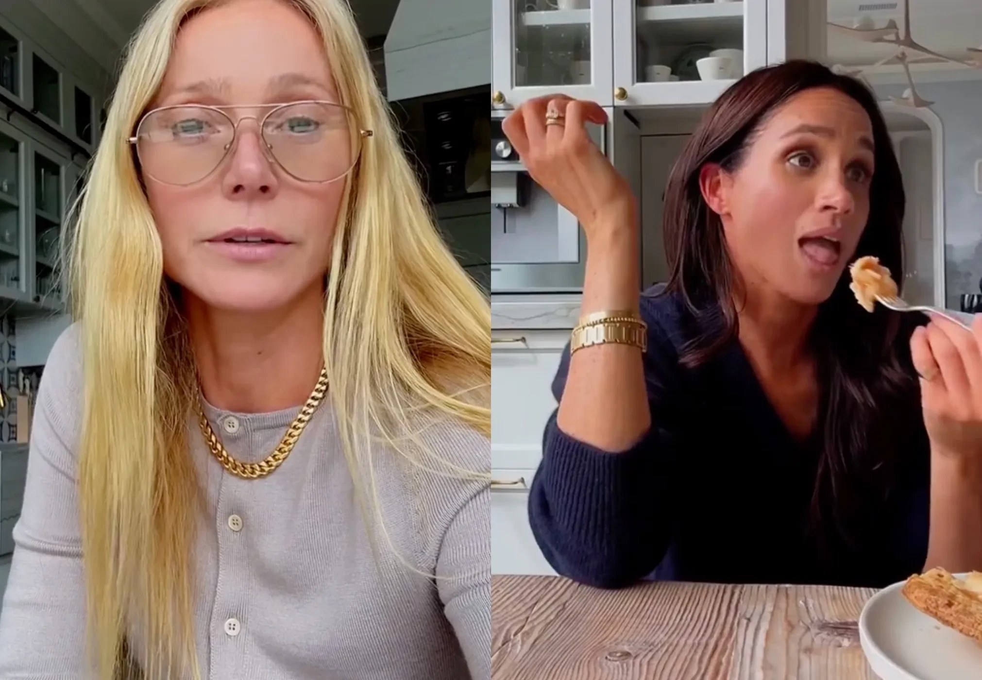 "Я вообще не понимаю, о чём речь, а ты понимаешь?" — сказала Пэлтроу и повернула камеру на Меган Маркл, которая сидела рядом.
