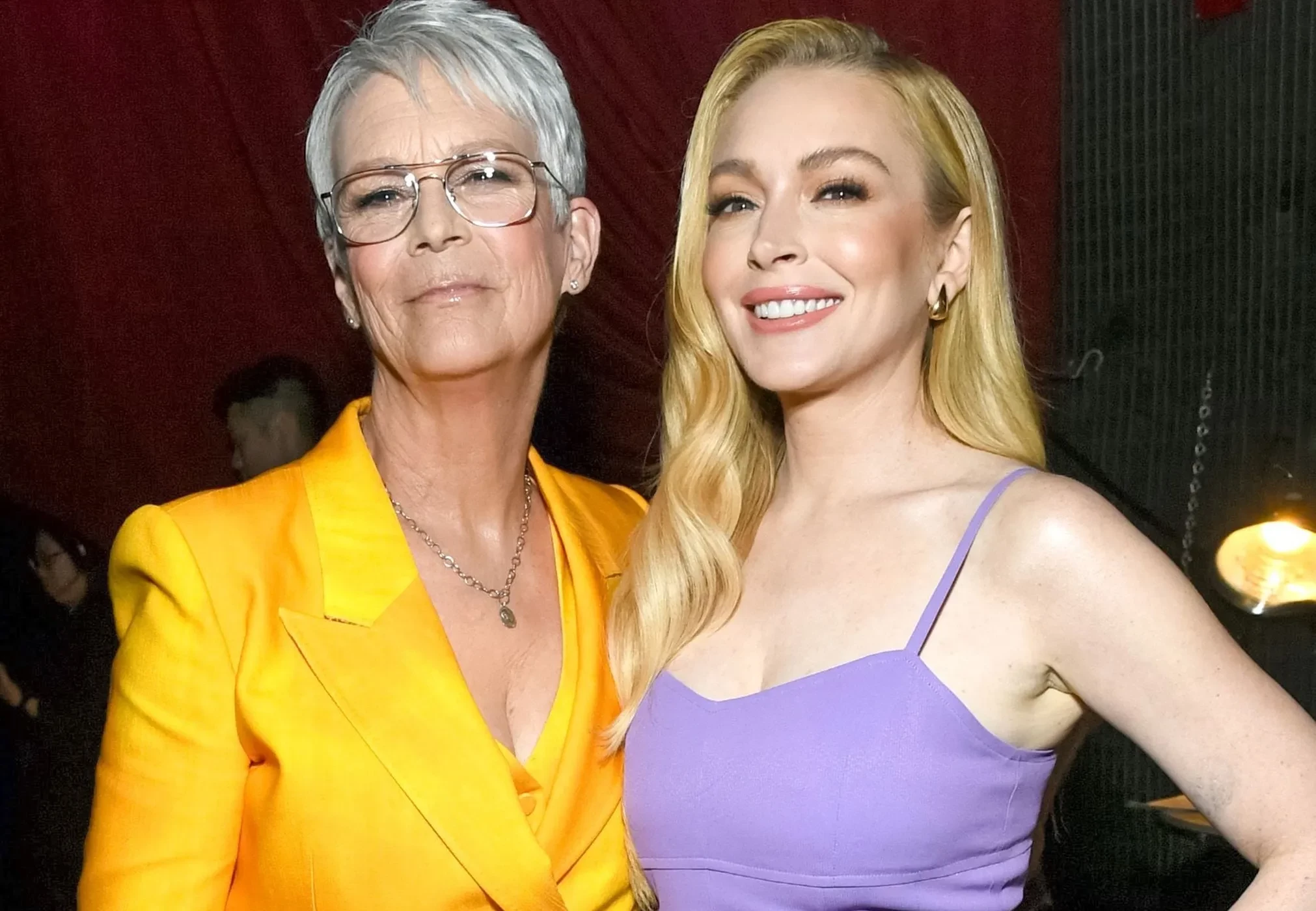 Линдси Лохан и Джейми Ли Кёртис в "Чумовой пятнице"Ранее в прессе широко обсуждались нарко- и алкозависимость Лохан, которая начала карьеру в кино в совсем юном возрасте. Весной 2017 года Линдси объявила, что приняла ислам, после чего поклонники обратили внимание на то, что внешность актрисы преобразилась. В 2022 году стало известно, что актриса вышла замуж за арабского финансиста Бадера Шаммаса. В 2023 году Линдси впервые стала матерью — у пары родился сын, которого назвали Луай.