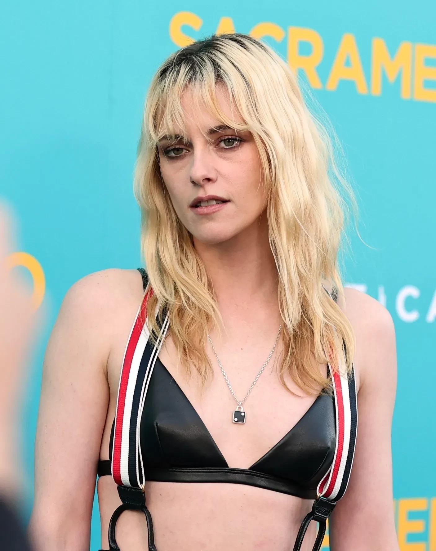Кристен Стюарт, которая недавно снова стала блондинкой, посетила специальный показ своего нового фильма "Сакраменто" в Лос-Анджелесе. 34-летняя звезда "Сумерек" позировала на дорожке в чёрных брюках с "подтяжками" и кожаном бра. Образ дополнили "небрежная" укладка, ботильоны на каблуках и подвеска с кулоном.