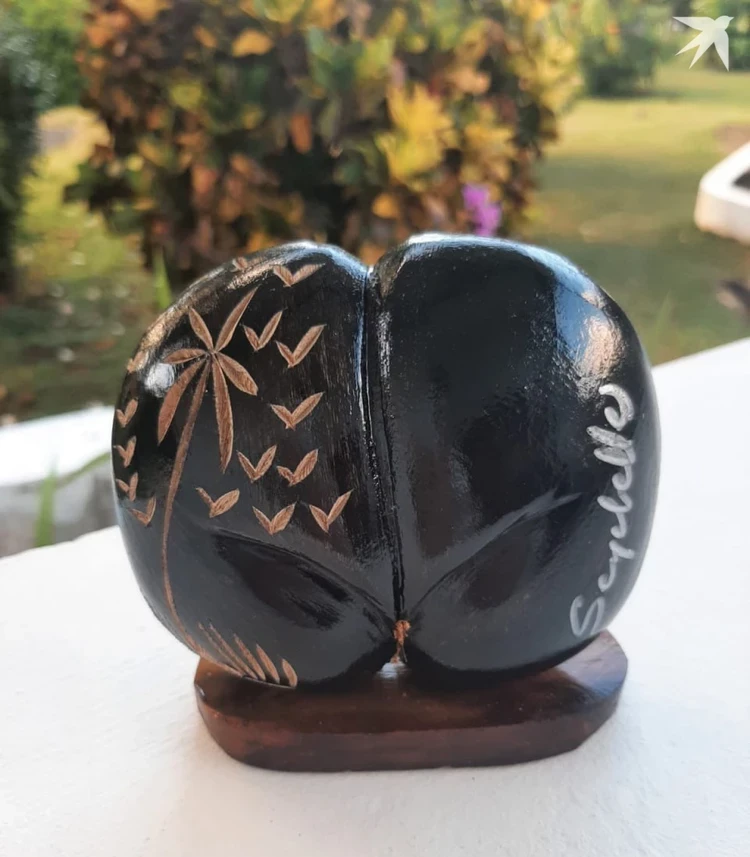 - Кокосовые ягодицы, растущие на сейшельских пальмах, - природная достопримечательность этих островов. Такой вот замечательный подарочек обнаружила утром на террасе своего кемпинга, - рассказала Кондулайнен.