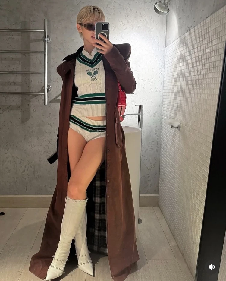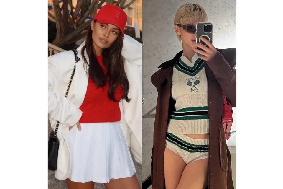 Образы звезд в популярном tennis core: Виктория Боня — в юбке плиссе, Марго Овсянникова — в вязаных микрошортах