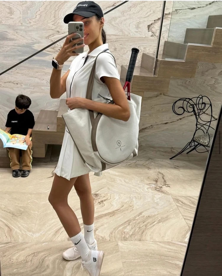 Анастасия реально занимается теннисом, потому в ее блоге часто можно видеть спортивные луки. На корт блогер выходит в юбке плиссе, футболке поло и удобных кроссовках. Плюс аксессуары — сумка для ракетки и бейсболка. В наше время в таком луке можно ходить не только на спорт.