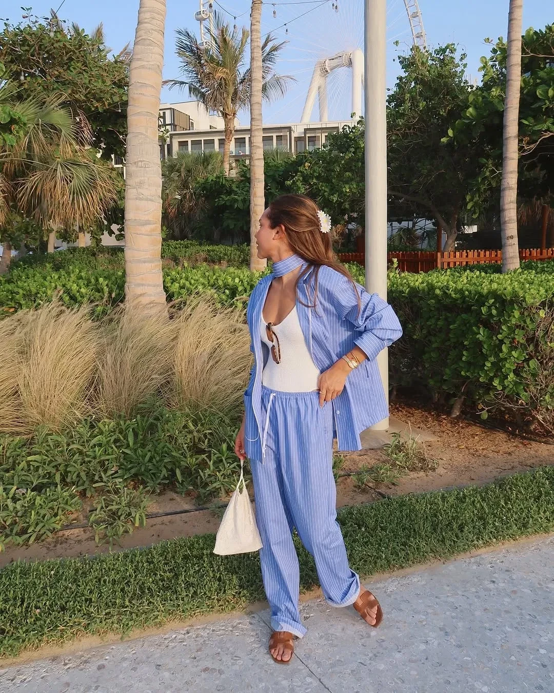 "La dolce vita! И немножко бомболони", — подписала снимки Стеша. В поездке она выгуляла голубой пижамный костюм в полоску, платье с цветочными принтом, которое дополнила сумкой Hermes и балетками Alaia, а также коричневый купальник.