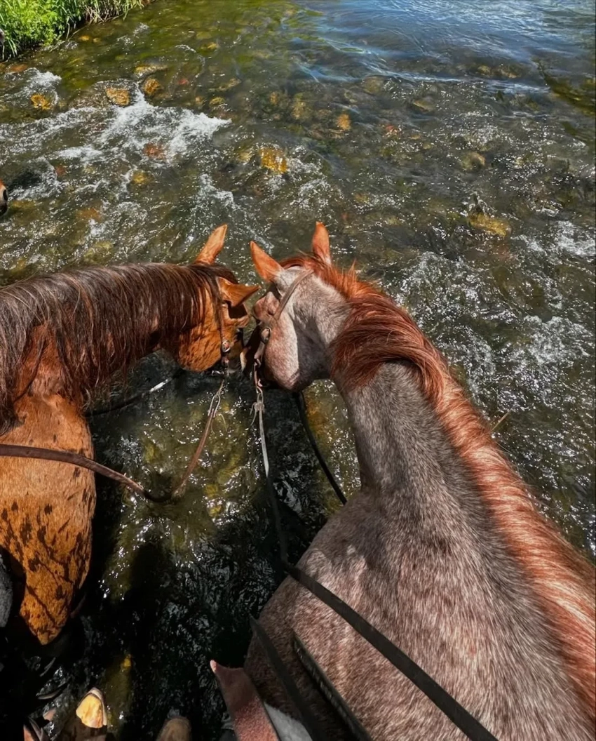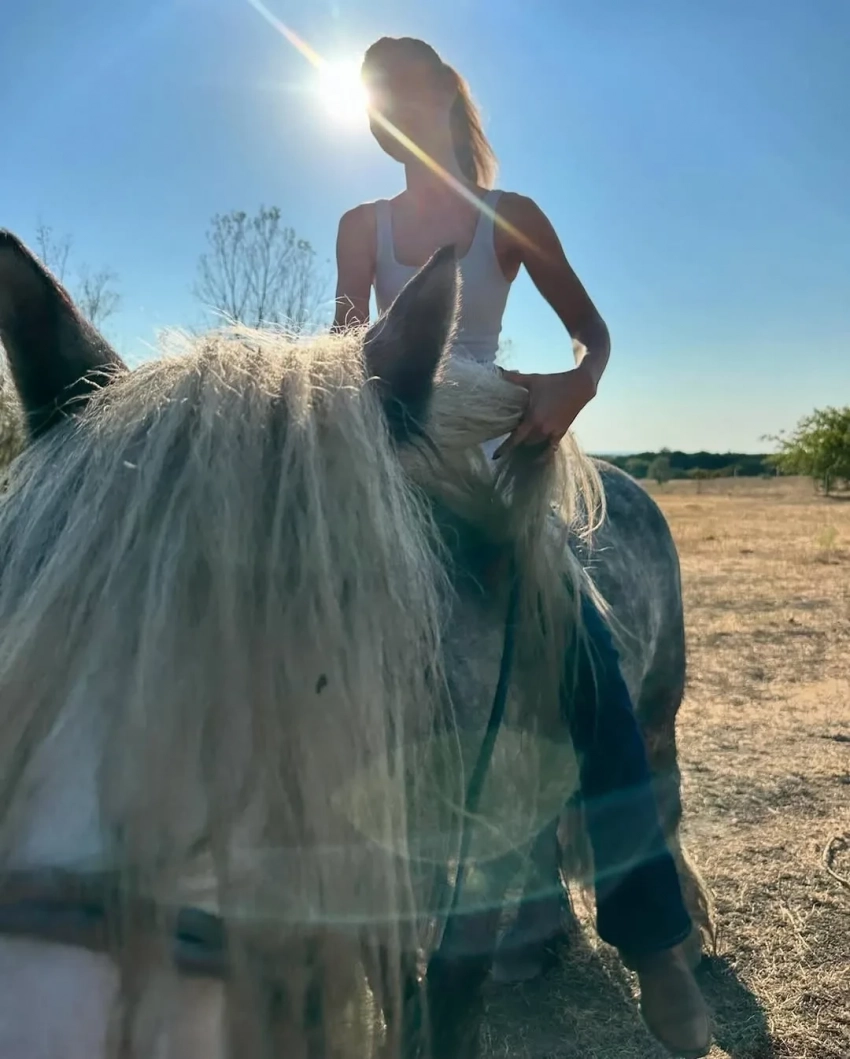Белла ХадидАдан БануэлосНа других фото Белла позирует с лошадьми и в бикини. Она также показала свои детские снимки с подругой, кадры из поездки на машине и свою собаку. "Я всегда чувствовала себя в безопасности в окружении природы. Мать-земля дала нам всё", — написала Хадид.