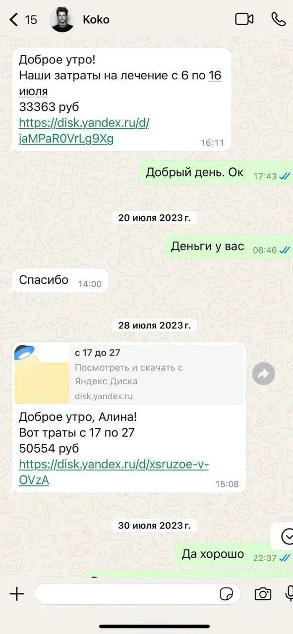 Данила Шарапов с женой и детьмиДанила также расценил ролик Митрошиной как способ шантажа: "С марта 2024 года в Пресненском районном суде Москвы рассматривается дело по исковому заявлению Митрошиной А. Е. о возмещении вреда в сумме более 6 млн рублей. Опубликование видео и несоответствующих действительности сведений является способом оказания давления на суд, а также на мою семью". В доказательство своих слов он прикрепил скриншоты переписки его жены с супругом актрисы, на которых они обсуждают траты на лечение.