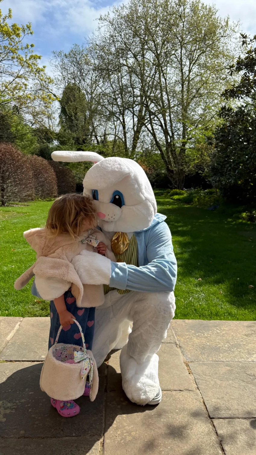 На фотографиях можно увидеть, как дети, трёхлетняя Изабелла и семилетний Джек, празднуют Пасху. На одном из снимков они общаются с аниматором в костюме кролика, а на другом уже сам аниматор обнимает Изабеллу. Также модель добавила фотографию, где дети едят сладости, которые им подарили.