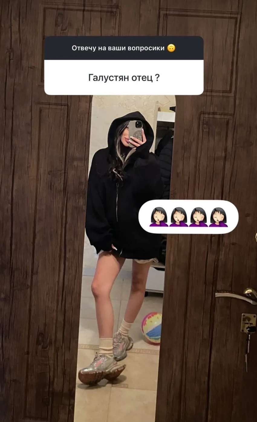 Скриншот инстаграма* МиленыСкриншот инстаграма* МиленыСкриншот инстаграма* МиленыСкриншот инстаграма* МиленыТакже она ответила на вопросы подписчиков. Визажистка рассказала, что у нее будет мальчик смешанных кровей. На вопрос о том, является ли все-таки Галустян отцом ребенка, она отреагировала лишь эмодзи в виде жеста, известного как фейспалм (рука, закрывающая лицо).