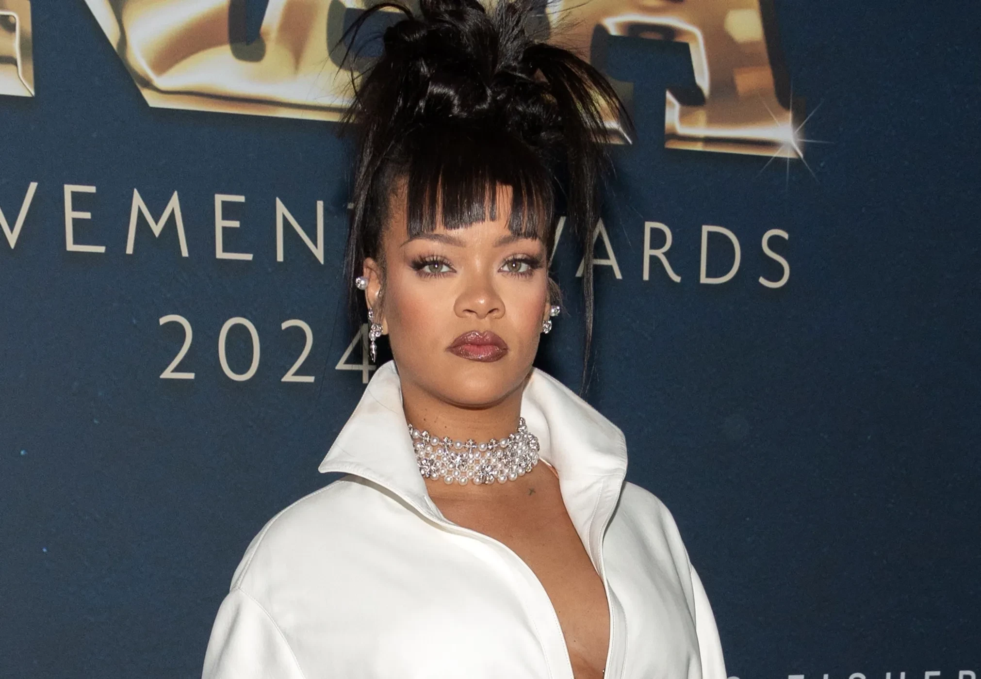 Артистку засняли в лобби отеля The Carlyle в Нью-Йорке, где она остановилась накануне ежегодного бала Met Gala. На видео Рианна была одета в облегающий серый комплект Miu Miu из юбки и лонгслива, подчёркивающий её изменившуюся фигуру. Образ дополняли чёрная панама, высокие гольфы в тон туфлям-лодочкам и меховой воротник, который певица держала в руках, прикрывая живот.
