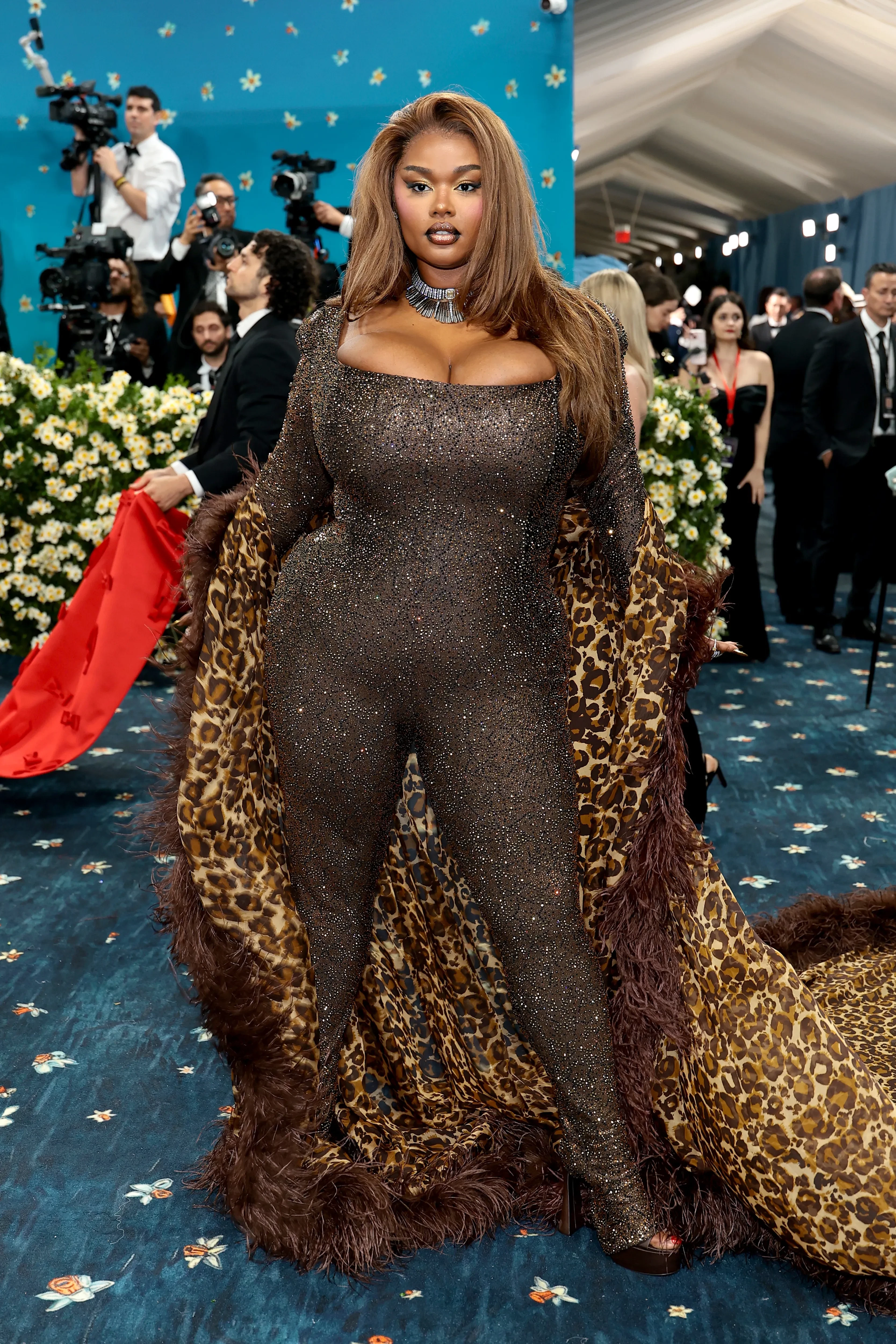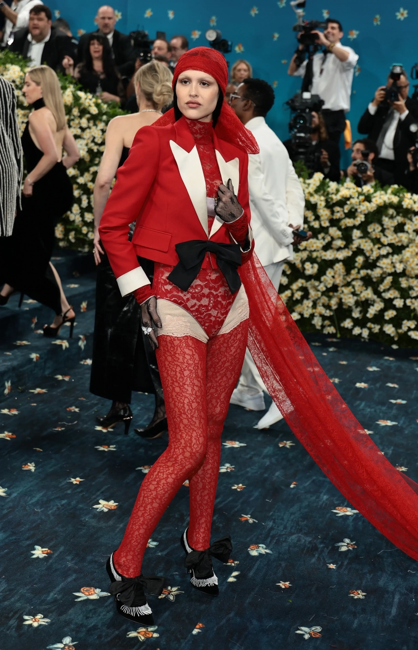 Амелия Грей в ValentinoАмелия Грей в ValentinoЛиззо в Christian SirianoЛиззо в Christian SirianoDoja Cat в Marc JacobsDoja Cat в Marc JacobsШакира и Майя Хоук появились на дорожке в розовых платьях, не имеющих ничего общего с темой мероприятия. Джорджина Родригес тоже решила не вникать в суть Бала и пришла в платье-комбинации Vetements. Образ total black Дуа Липы в этом году, к сожалению, не особо отличается от её прошлогоднего выхода. Модель Прешес Ли тем временем показала самый неудачный образ на дорожке, появившись в блестящем облегающем комбинезоне и леопардовой накидке.