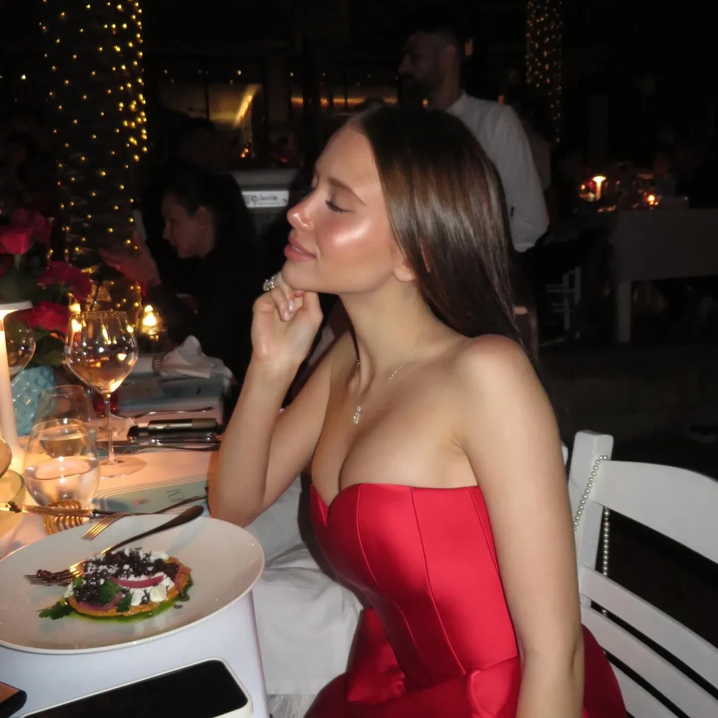 Вчера в Дубае на площадке NAMMOS Dubai состоялся концерт Григория Лепса. Среди многих гостей была и 19-летняя невеста певца Аврора Киба. На концерте девушка сидела за столом вместе с рэпером Джиганом, а позже танцевала с его супругой Оксаной Самойловой. Для выхода в свет Киба выбрала красное платье-бюстье и оставила волосы распущенными.