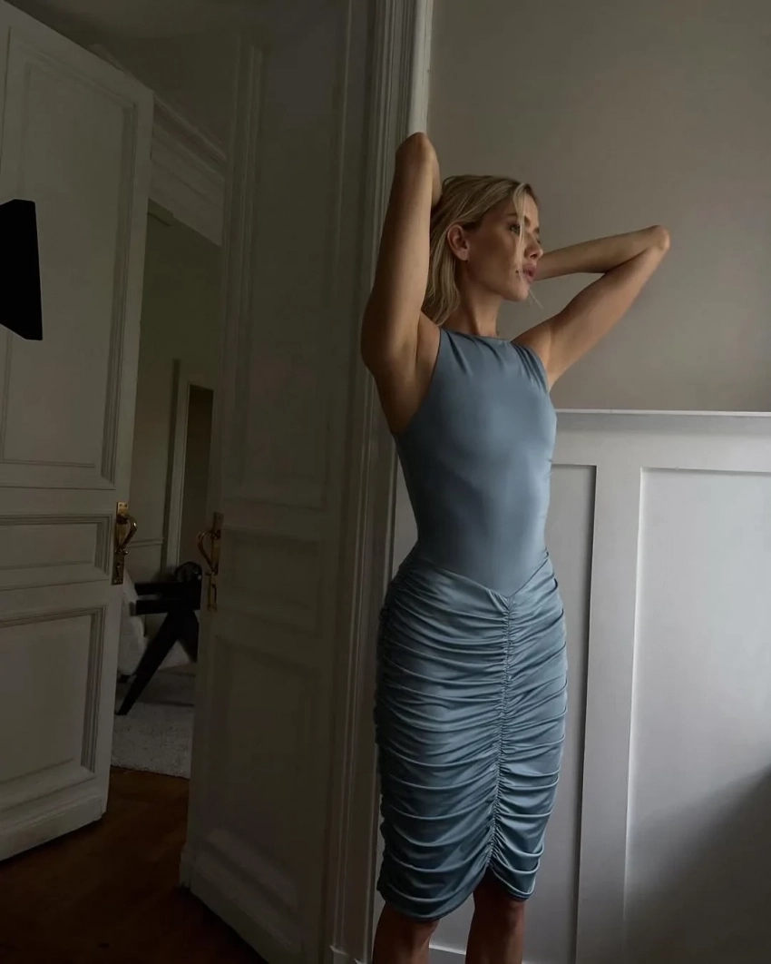Елена Перминова снялась в новой фотосессии для бренда 12 Storeez. На снимках, которые появились в соцсетях, 38-летняя Перминова позирует в летних образах: она примерила голубое облегающее платье с белыми босоножками на каблуке и коричневый комплект из юбки и топа.