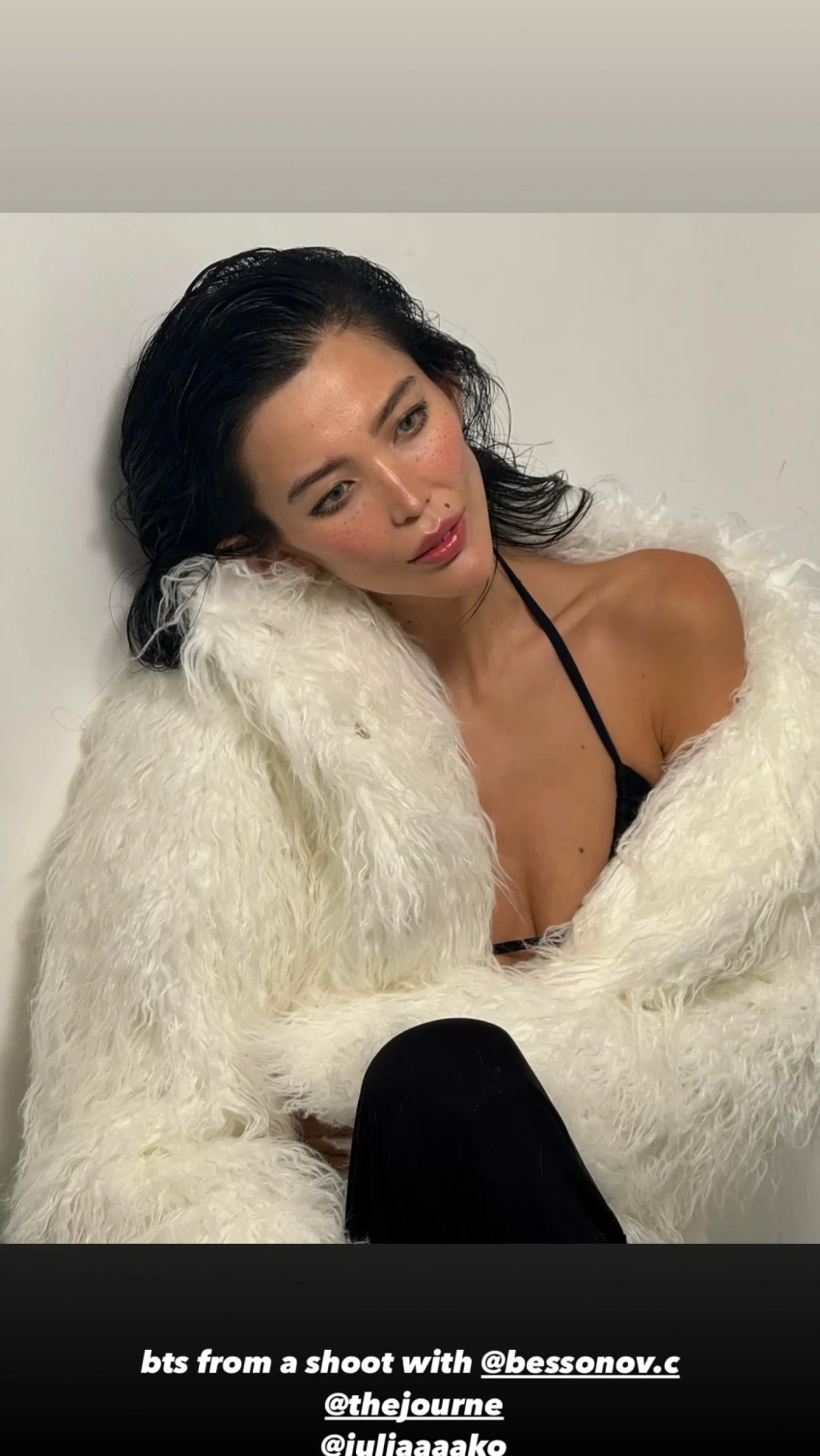 На снимках Дарина позирует в длинной юбке и топе, на некоторых кадрах сверху она надела шубу.
