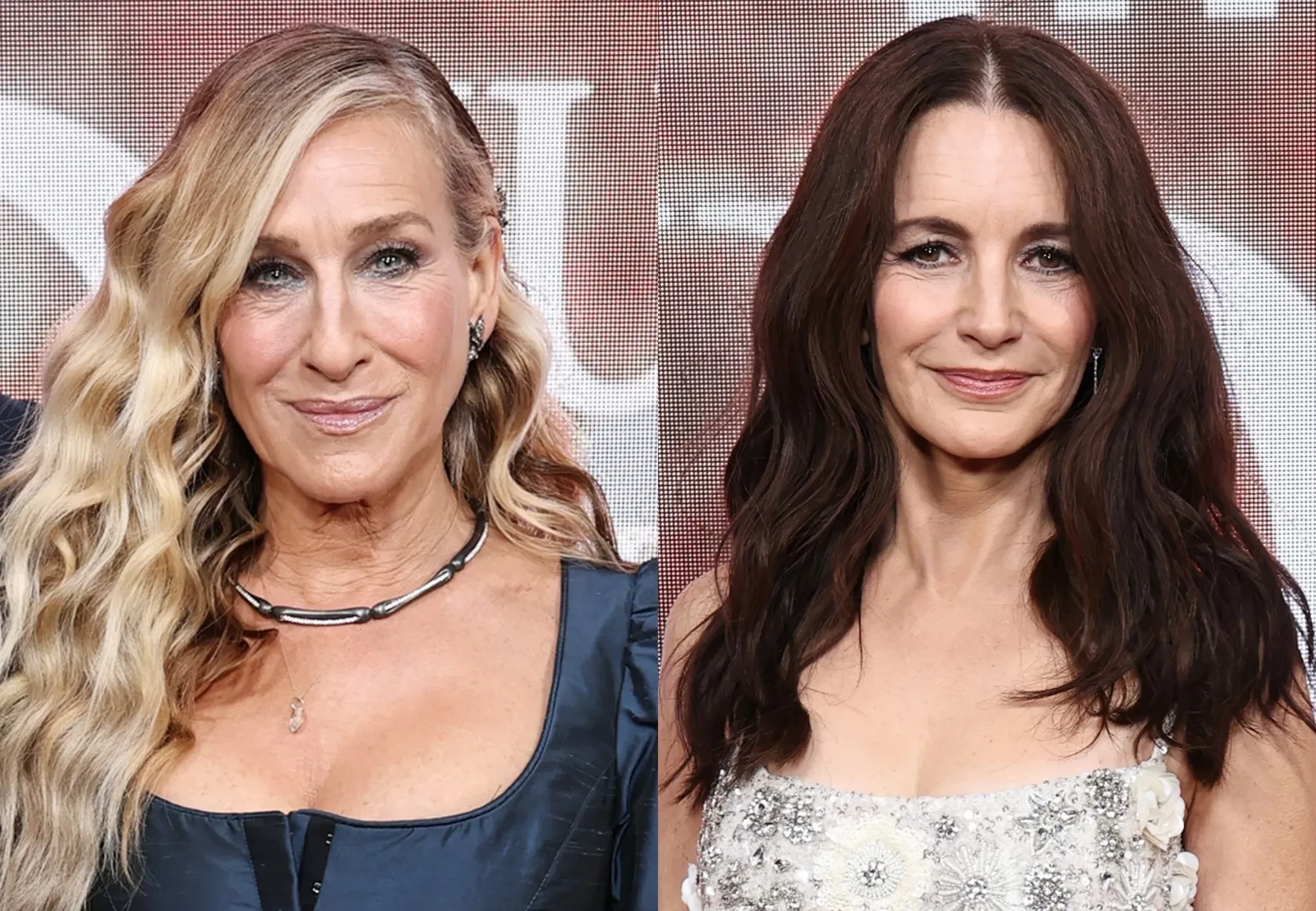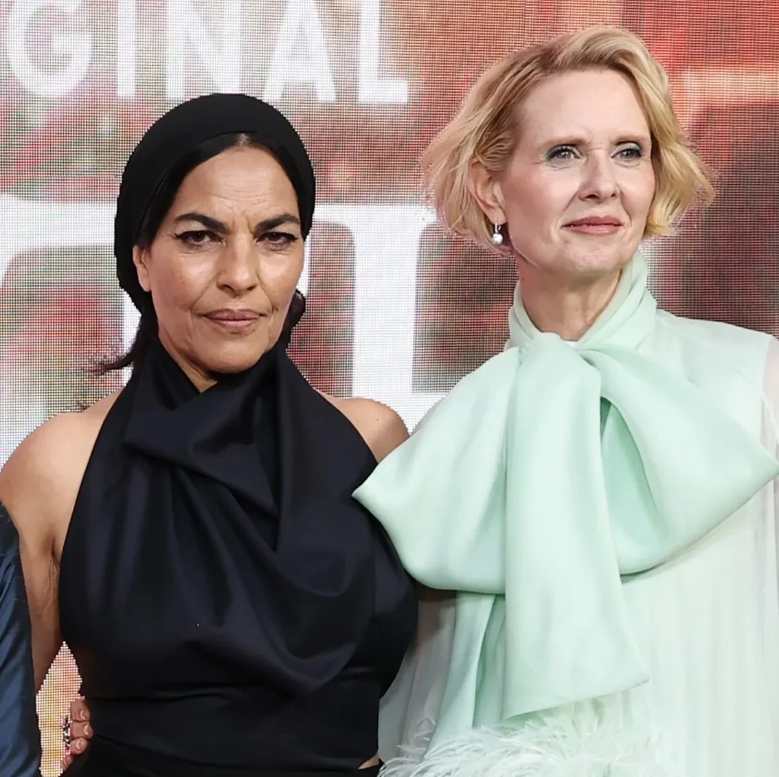 60-летняя Сара Джессика позировала в платье Vivienne Westwood с пышной юбкой, 59-летняя Синтия Никсон надела наряд мятного оттенка с перьями Richard Quinn, а 60-летняя Кристин Дэвис выбрала расшитое цветами платье Rachel Gilbert.