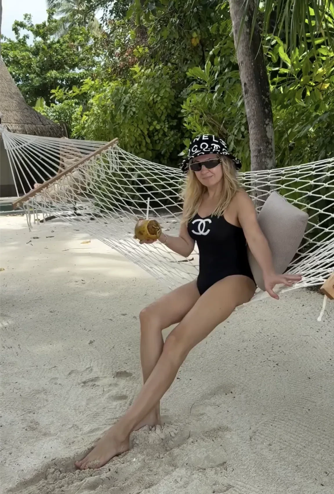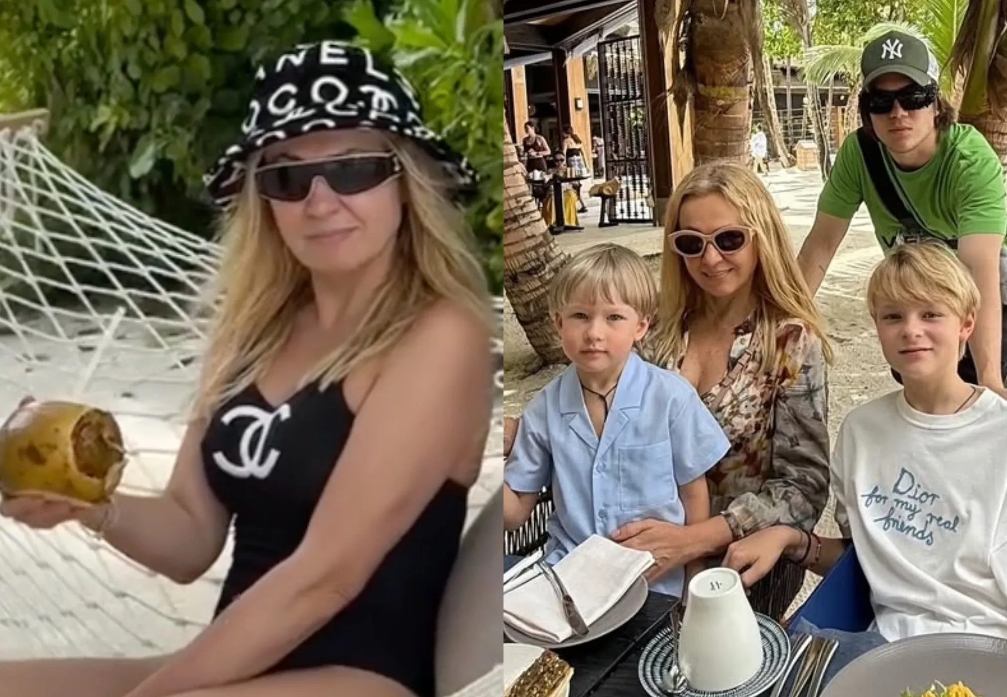 На снимках супруга фигуриста показала завтрак в кругу сыновей: Николая, Александра (Гном Гномыча) и Арсения, а также поделилась и другими снимками себя и детей. "Глазами мужа", — подписала Яна видео, где она позирует в гамаке в купальнике и панаме Chanel.