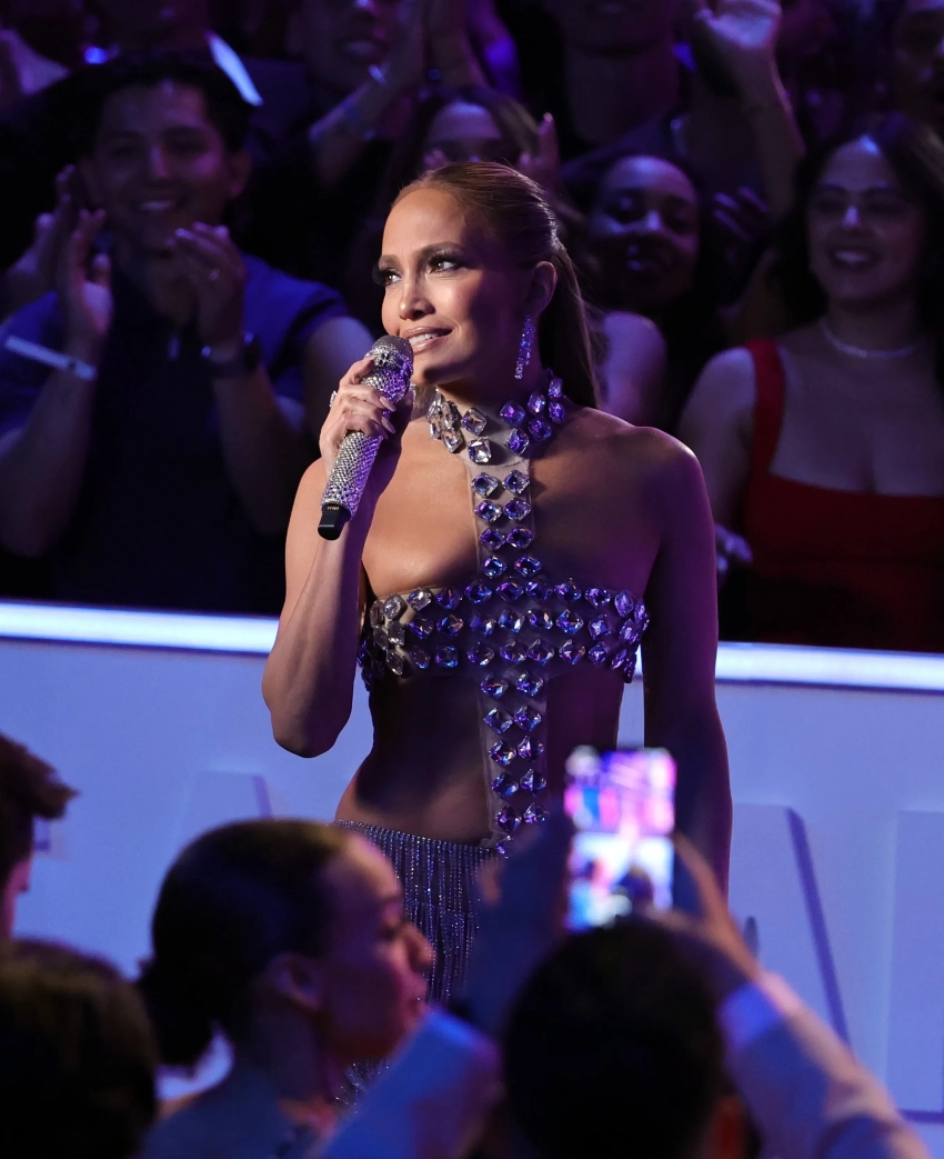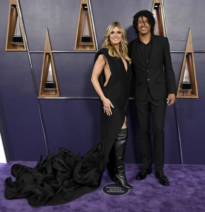 Хайди Клум с сыном Генри55-летняя Дженнифер Лопес за время церемонии вручения наград премии сменила восемь образов. На дорожке она появилась в платье песочного оттенка с разрезами, а на сцене примерила платье с накидкой с вышивкой Miss Sohee, телесный комбинезон с кристаллами Swarovski и абстрактными чёрными фигурами, а также топ в форме креста с юбкой с бахромой. Кульминацией вечера стал поцелуй певицы, которая не так давно развелась с Беном Аффлеком, с одним из танцоров.