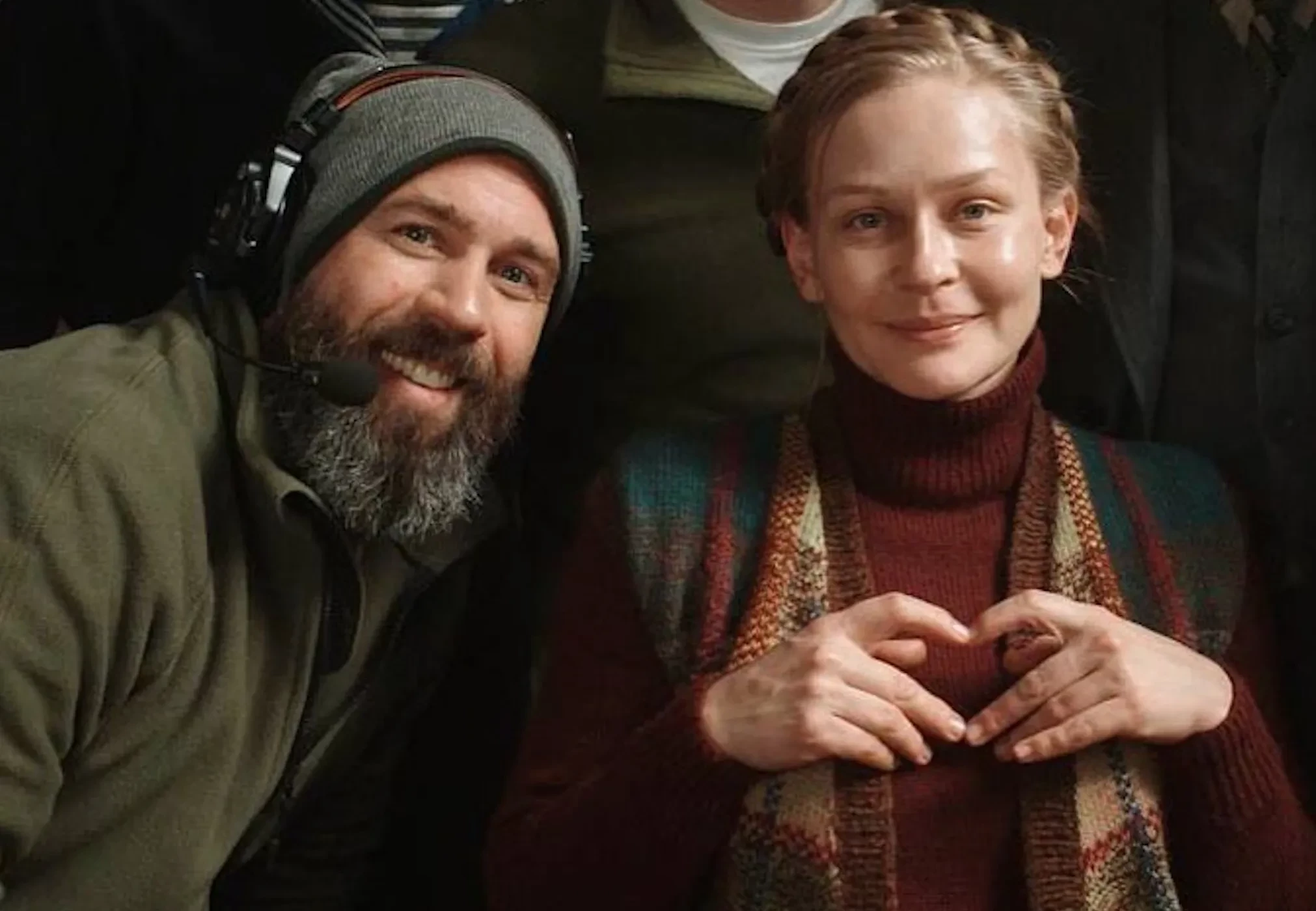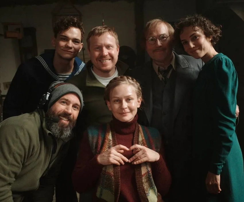Михаил Милашин (слева), Юлия Пересильд, Слава Копейкин и Стася Миловская с коллегами"Купаемся друг в друге. Компания просто огонь! И наш оператор Миша Милашин", — рассказывала о съёмках Юлия, дополнив имя предполагаемого бойфренда эмодзи с сердцем.
