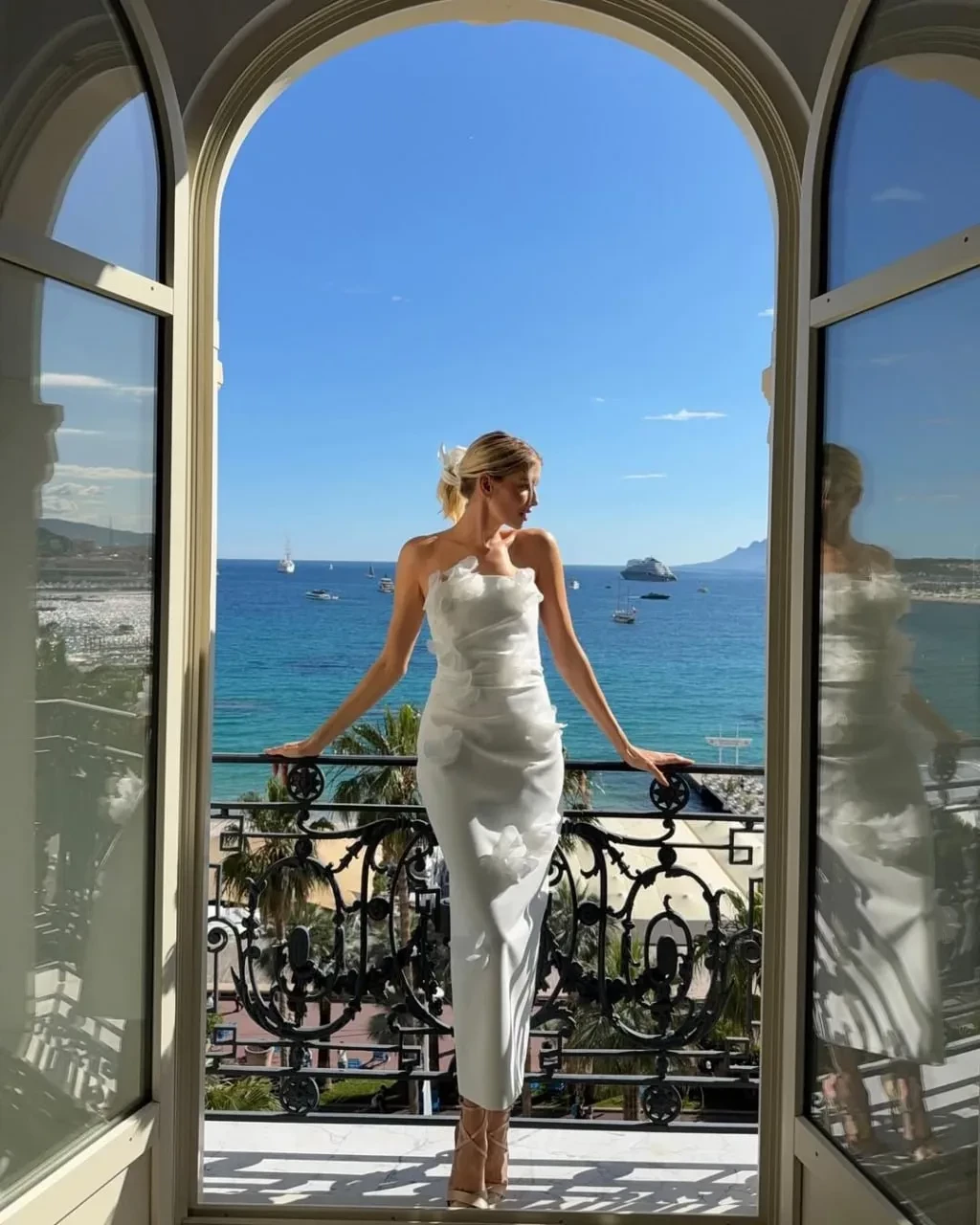 "Ощущая себя невероятно красивой в нём", — прокомментировала образ 38-летняя Перминова. Судя по интерьеру и виду за окном, фотосессия была сделана в Каннах, куда модель прилетала на 78-й международный кинофестиваль со своим бойфрендом, манекенщиком Тарасом Романовым.