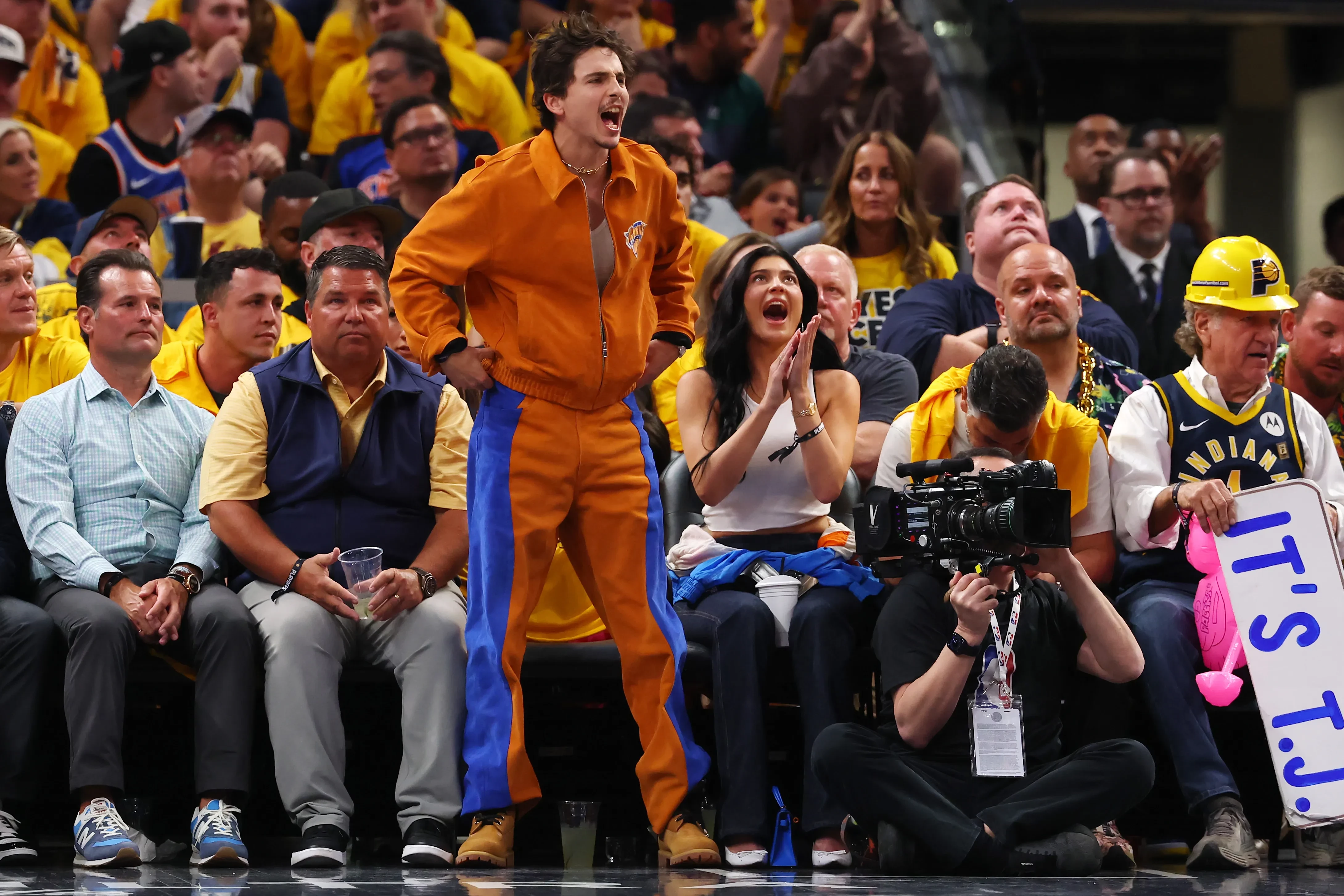 Тимоти Шаламе 31 мая снова посетил баскетбольный матч, который в этот раз проходил в штате Индиана: любимая нью-йоркская команда актера, Knicks, играла там с местной командой Pacers.