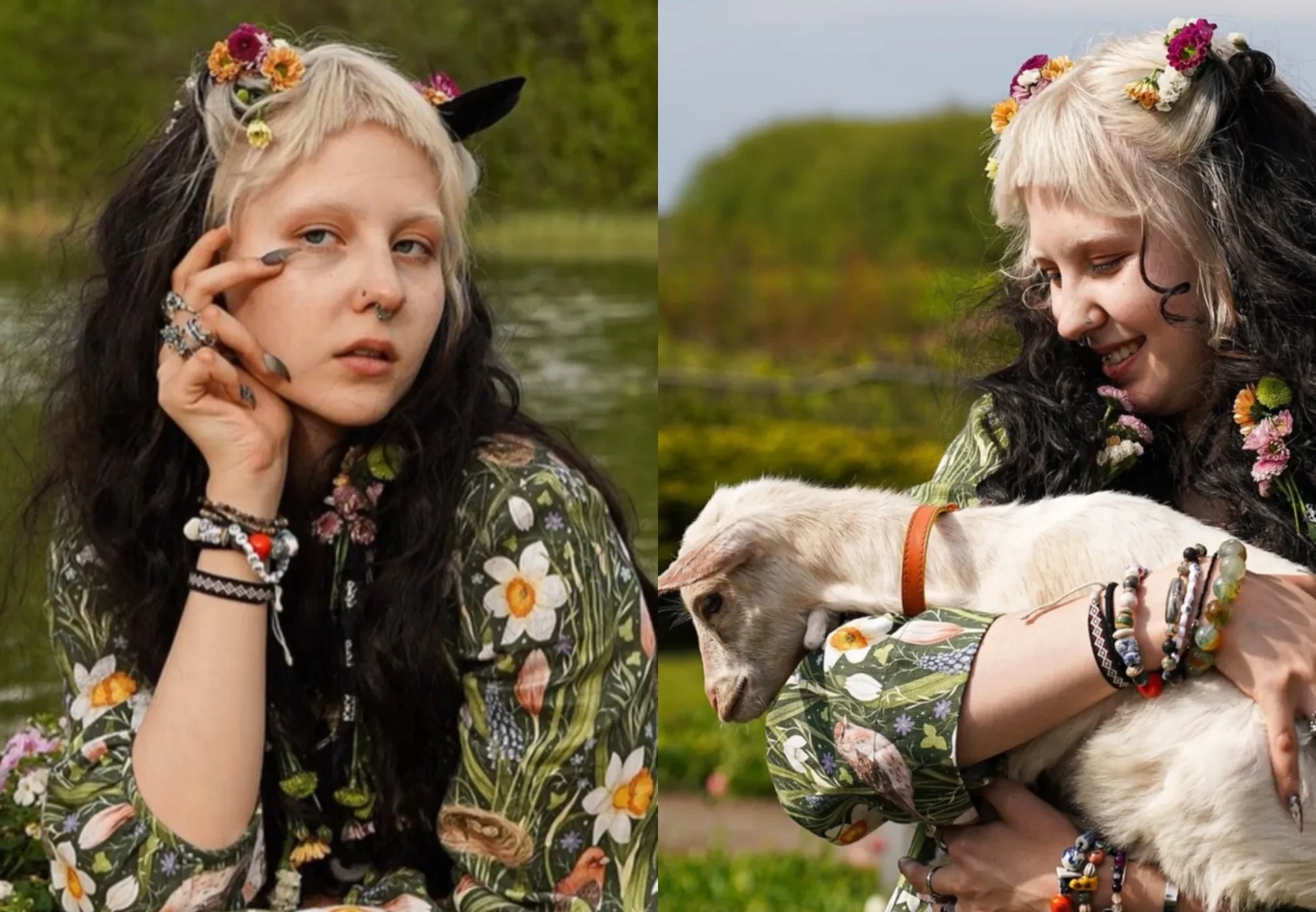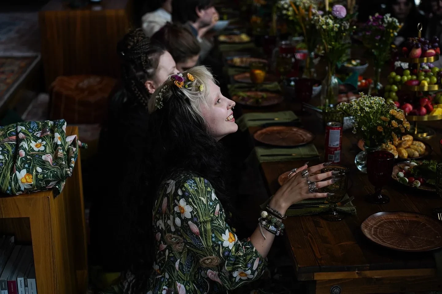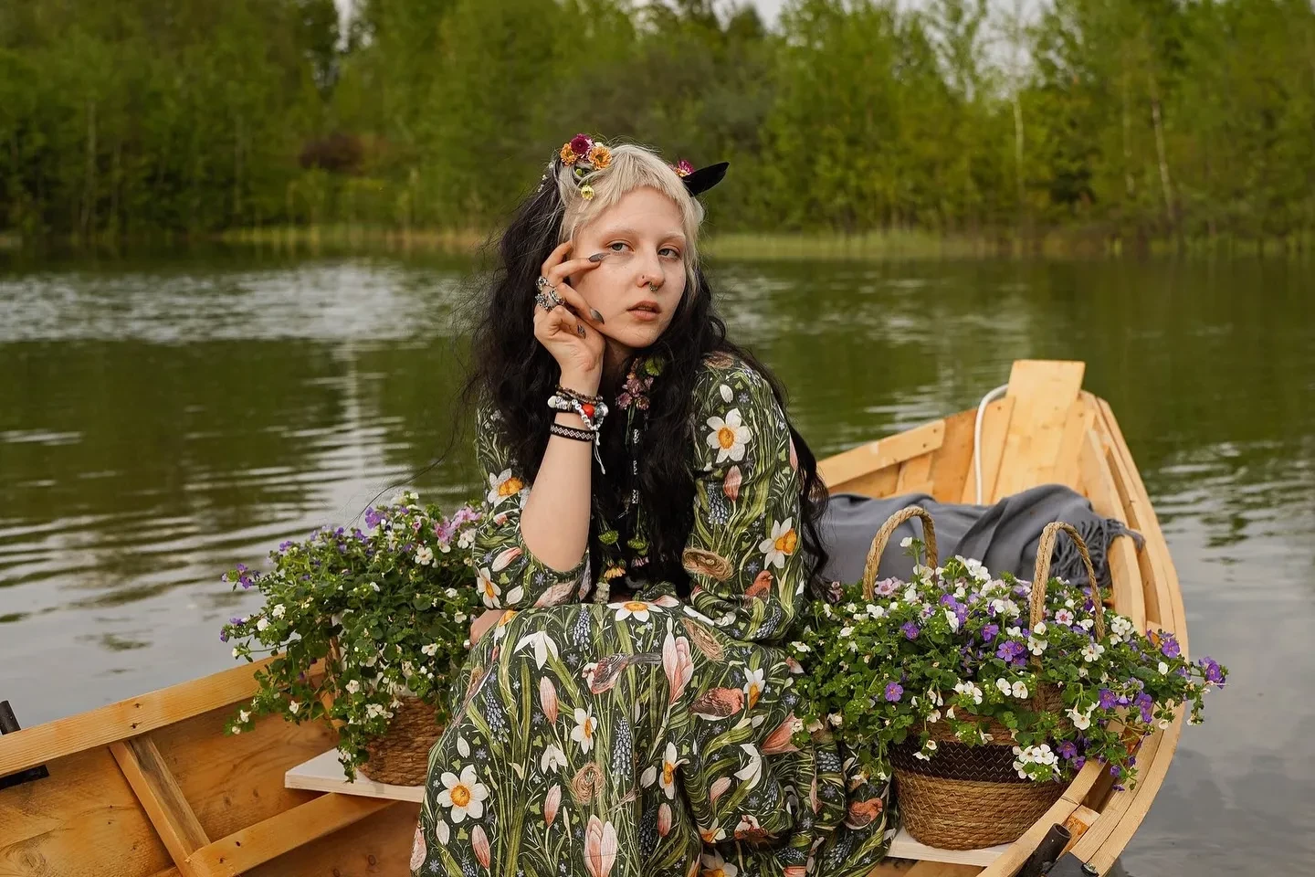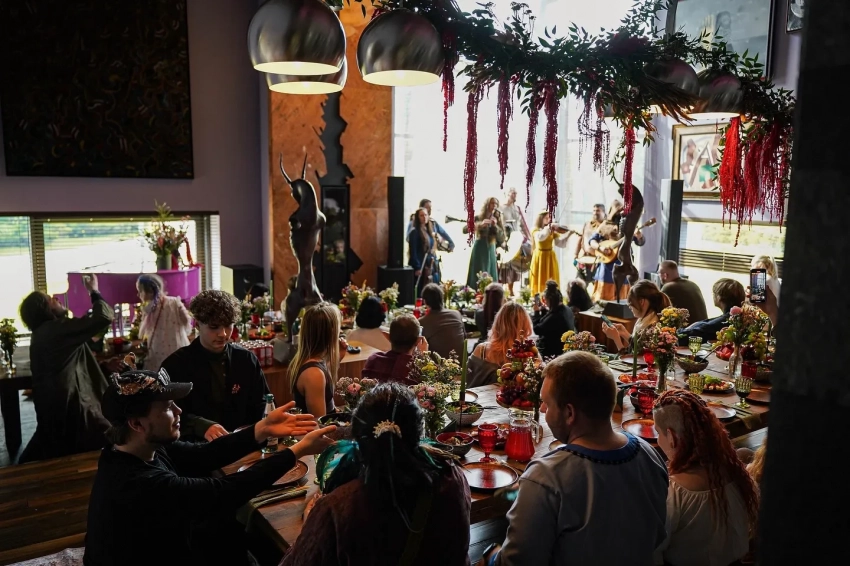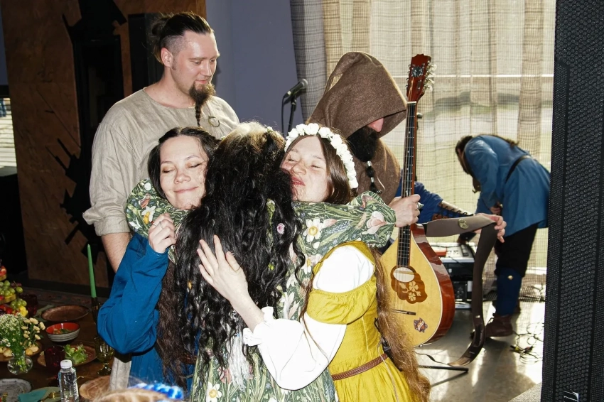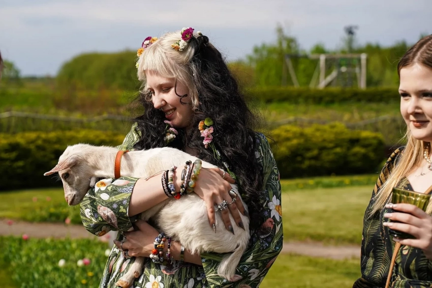 Судя по фото, опубликованным в инстаграме*, торжество прошло в стиле средневекового фэнтези: за музыку отвечала медивал-фолк-группа "Огни Новиграда", в волосы гостям вплетали живые цветы, в оформлении использовались природные мотивы, а по территории гуляли настоящие козлята. В программе, помимо классического пира и хороводов, были прогулки на лодках по озеру и баня.