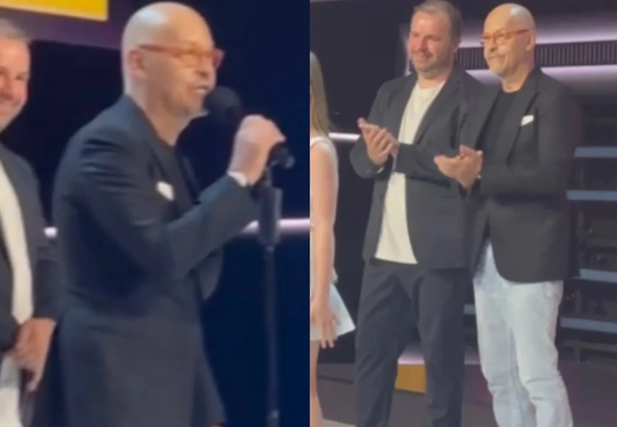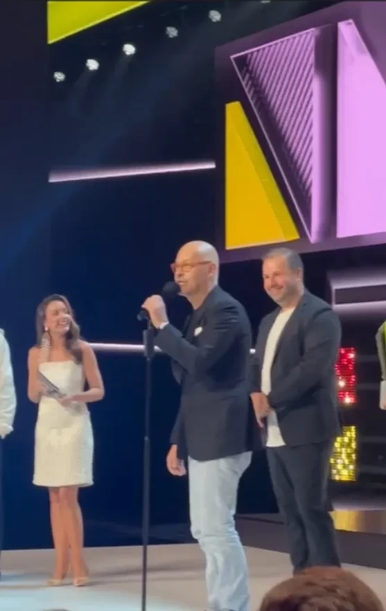 Бондарчук вышел на сцену, чтобы объявить победителей в номинации "Мир должен знать". Приз из рук режиссёра получили юные исполнительницы нашумевшего трека Sigma Boy Светлана Чертищева (Betsy) и Мария Янковская.