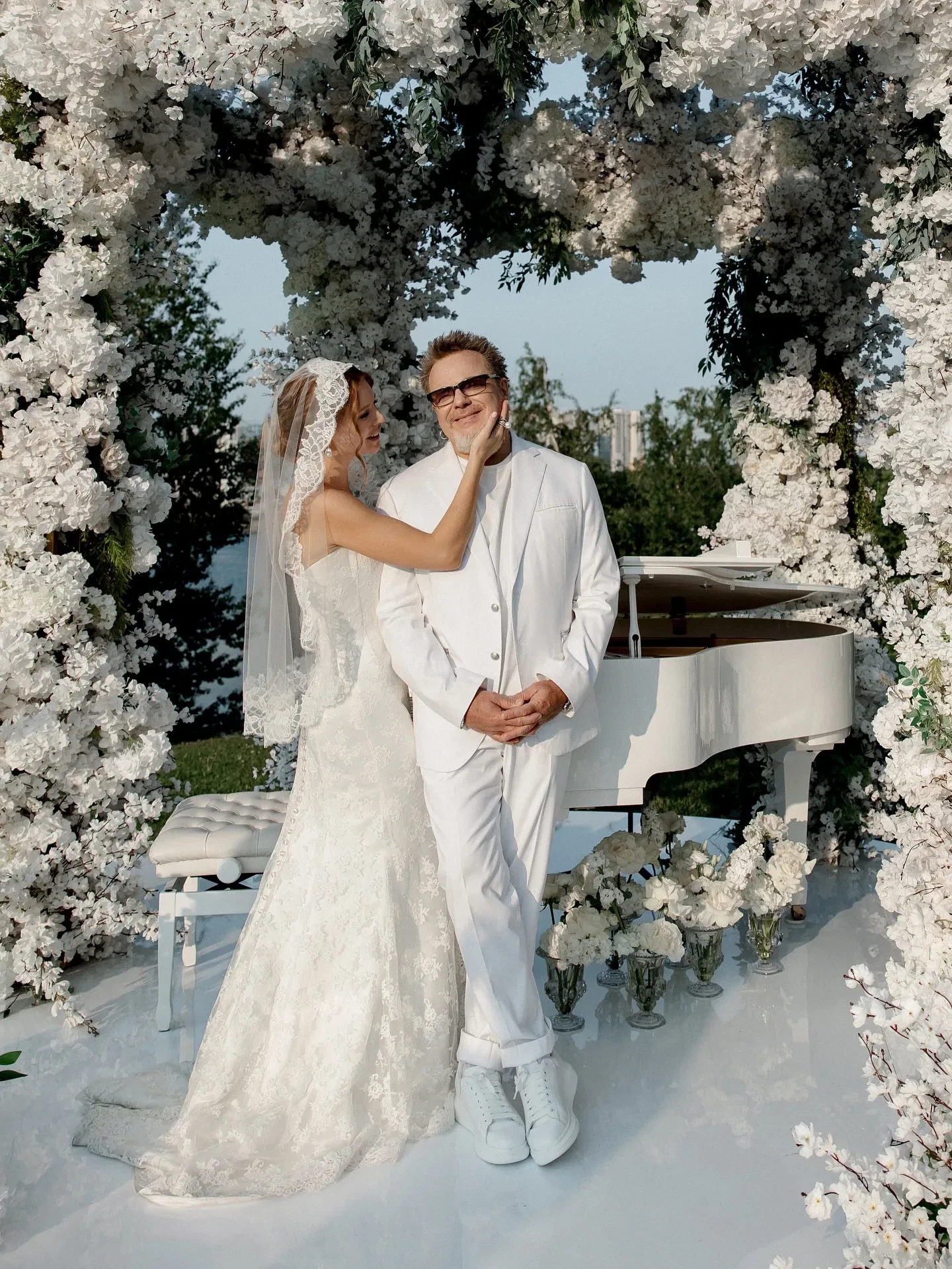 57-летний Владимир Пресняков и Наталья Подольская отпраздновали 20-летие со дня знакомства и 15-летие в браке. В честь круглой даты они снова сыграли свадьбу в кругу близких и друзей. На мероприятие пришли Лариса Долина, Игорь Крутой, Полина Гагарина, Пелагея, Игорь Николаев, Леонид Агутин, Григорий Лепс, Дмитрий Маликов, Светлана Бондарчук, беременная Регина Тодоренко и другие.
