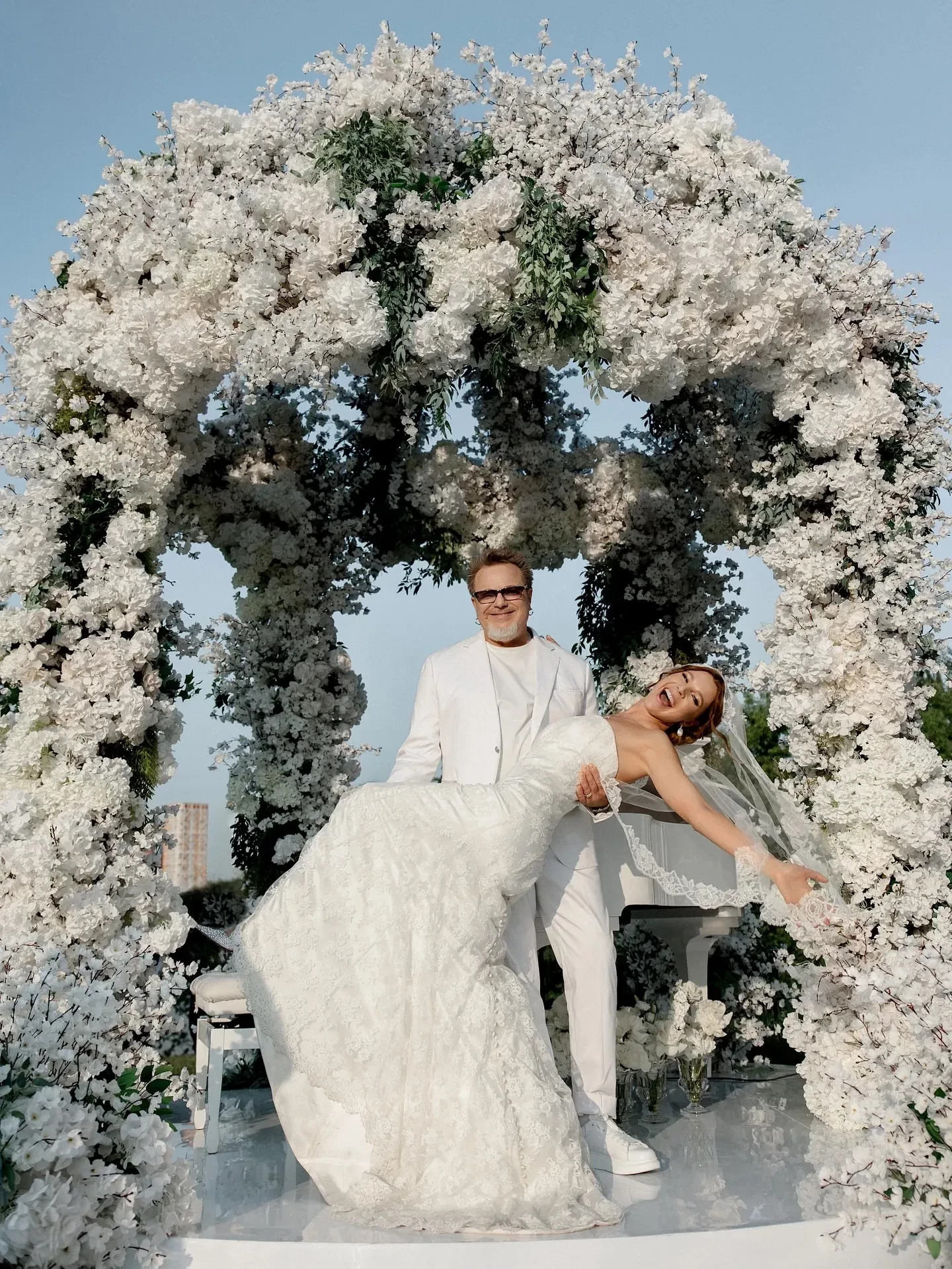 https://t.me/spletnik2006/32581Наталья Подольская и Владимир ПресняковНаталья Подольская и Владимир ПресняковКогда супруги выходили к свадебной арке, Дмитрий Маликов играл на рояле. После же свои хиты спели Григорий Лепс, Лариса Долина, Александр Ревва, а ближе к ночи и сама 43-летняя Наталья исполнила несколько своих композиций. Также она за вечер сменила сразу три платья: сначала Наталья вышла к гостям в классическом свадебном платье, потом переоделась в длинное элегантное платье с открытой спиной, а в конце вечера надела мини-платье.
