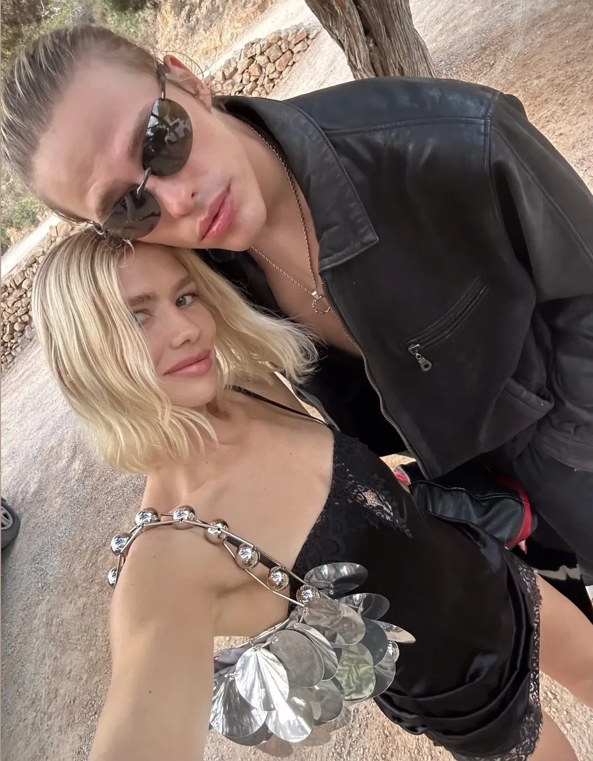 38-летняя экс-возлюбленная миллиардера Александра Лебедева надела на мероприятие чёрное платье мини с кружевом, грубые ботинки и мотокуртку, дополнив образ солнцезащитными очками и серебристой сумкой. 29-летний Тарас позировал рядом с Еленой в образе total black с кожаной курткой.