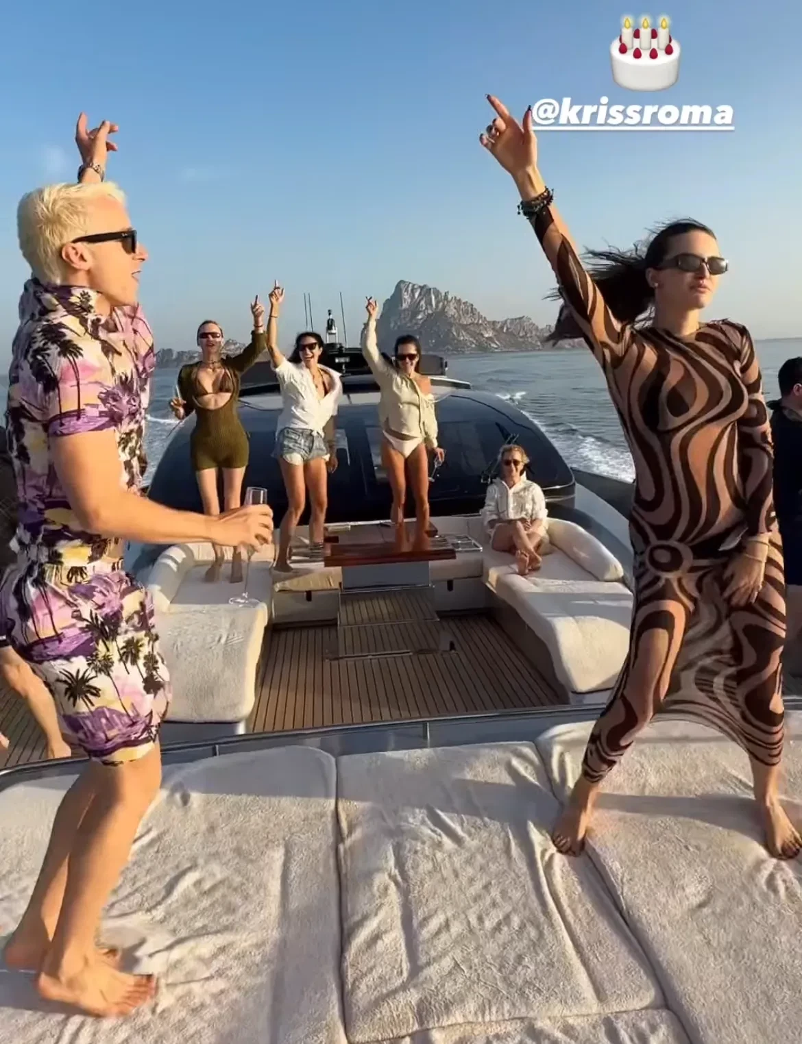 Кристина Романова, которая в прошлом году устроила трёхдневную вечеринку в Марокко в честь своего юбилея с мировыми звёздами, отметила 31-й день рождения "скромной" прогулкой на яхте в районе Ибицы. Поздравить именинницу собрались её близкие друзья, а возлюбленный, 62-летний миллиардер Владислав Доронин, устроил ей сюрприз в стиле Джеймса Бонда и догнал яхту на катере.