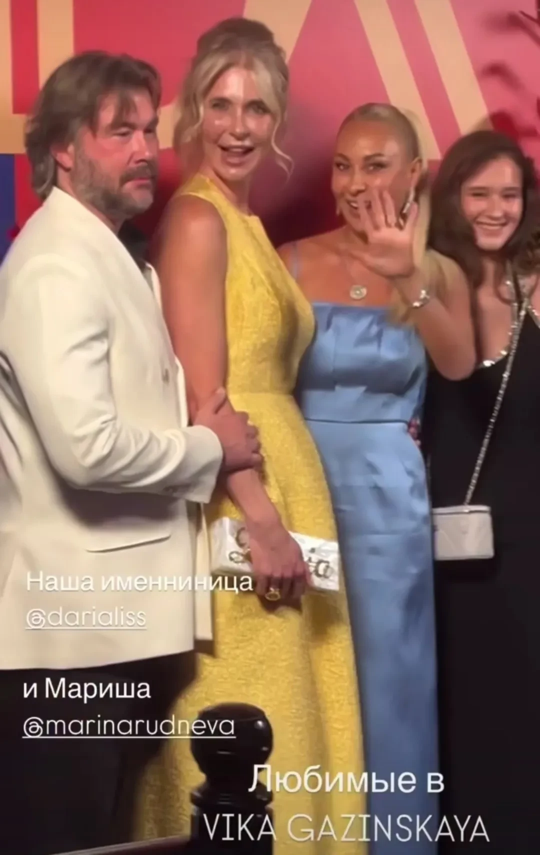 На мероприятии, которое проходило в особняке на Волхонке, собрались многие представители светской Москвы: Виктория Шелягова, Оксана Бондаренко, Ксения Соловьева, Марина Руднева, Ирина Зарькова, Вика Газинская и другие. Многие из них поделились фотографиями и видео с праздника в соцсетях. Судя по репортажам с места событий, гостей усадили за стол, украшенный цветами и фруктами (за сет-дизайн отвечала команда Михаила Друяна), а развлекал их 83-летний Лев Лещенко. Почти все приглашенные не только слушали, но и охотно танцевали под знакомую с детства музыку.