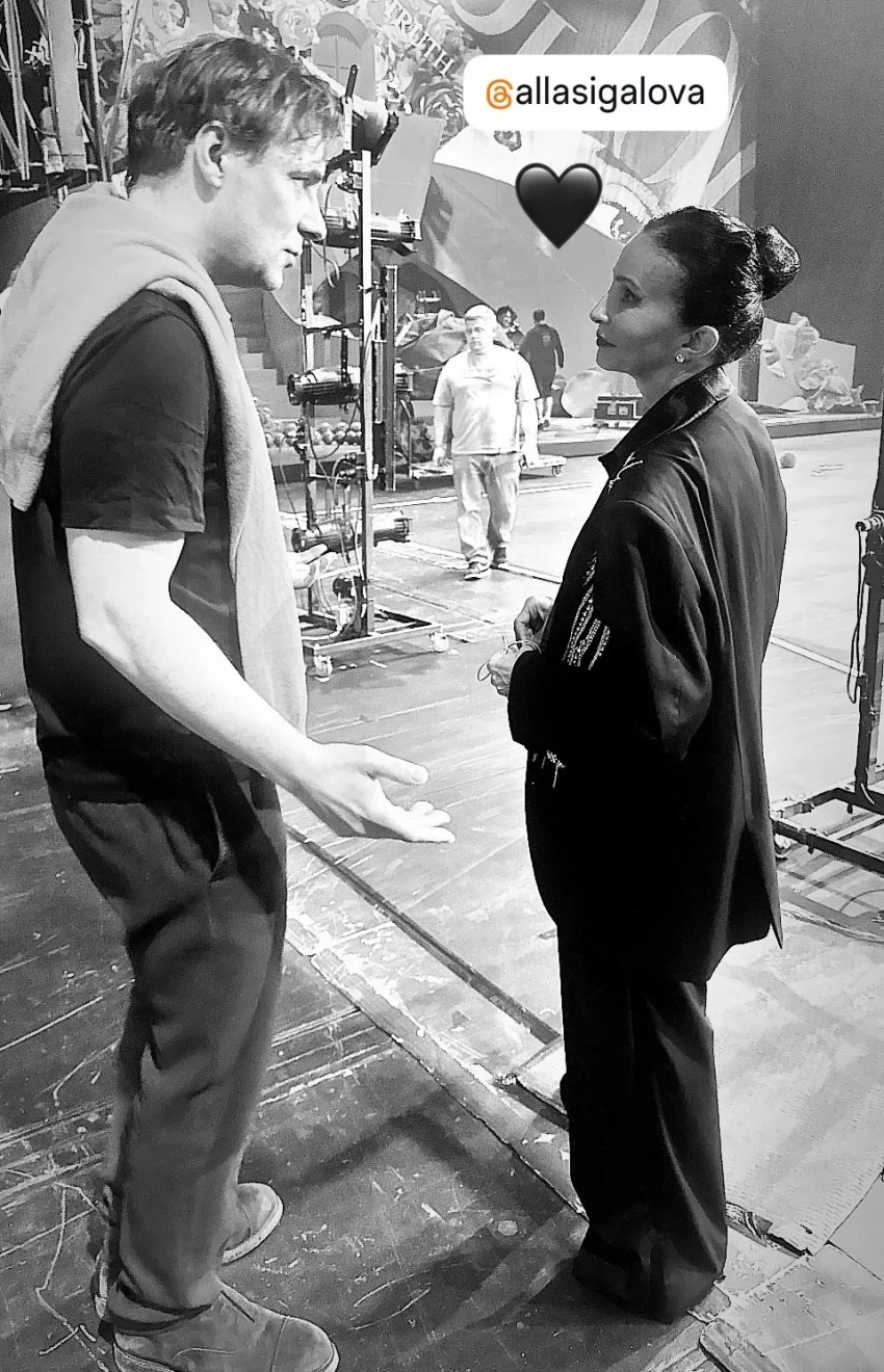 Фото Снигирь в кожаном тренче опубликовал на своей странице Цыганов, а сама актриса выложила снимок мужа с Аллой Сигаловой за кулисами. Супруги, которые вместе уже десять лет, сопроводили фото друг друга эмодзи с сердцем.