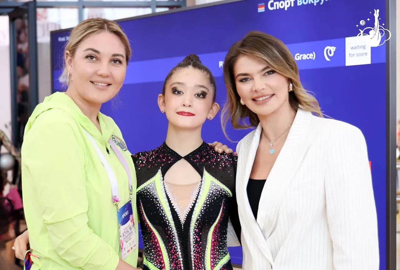 На одной из церемоний 42-летняя Кабаева появилась в розовом укороченном жакете с декором, свой образ она дополнила светлыми джинсами свободного кроя и атласными туфлями на шпильке. Для финального дня соревнований Алина выбрала светлый брючной костюм с чёрным топом.