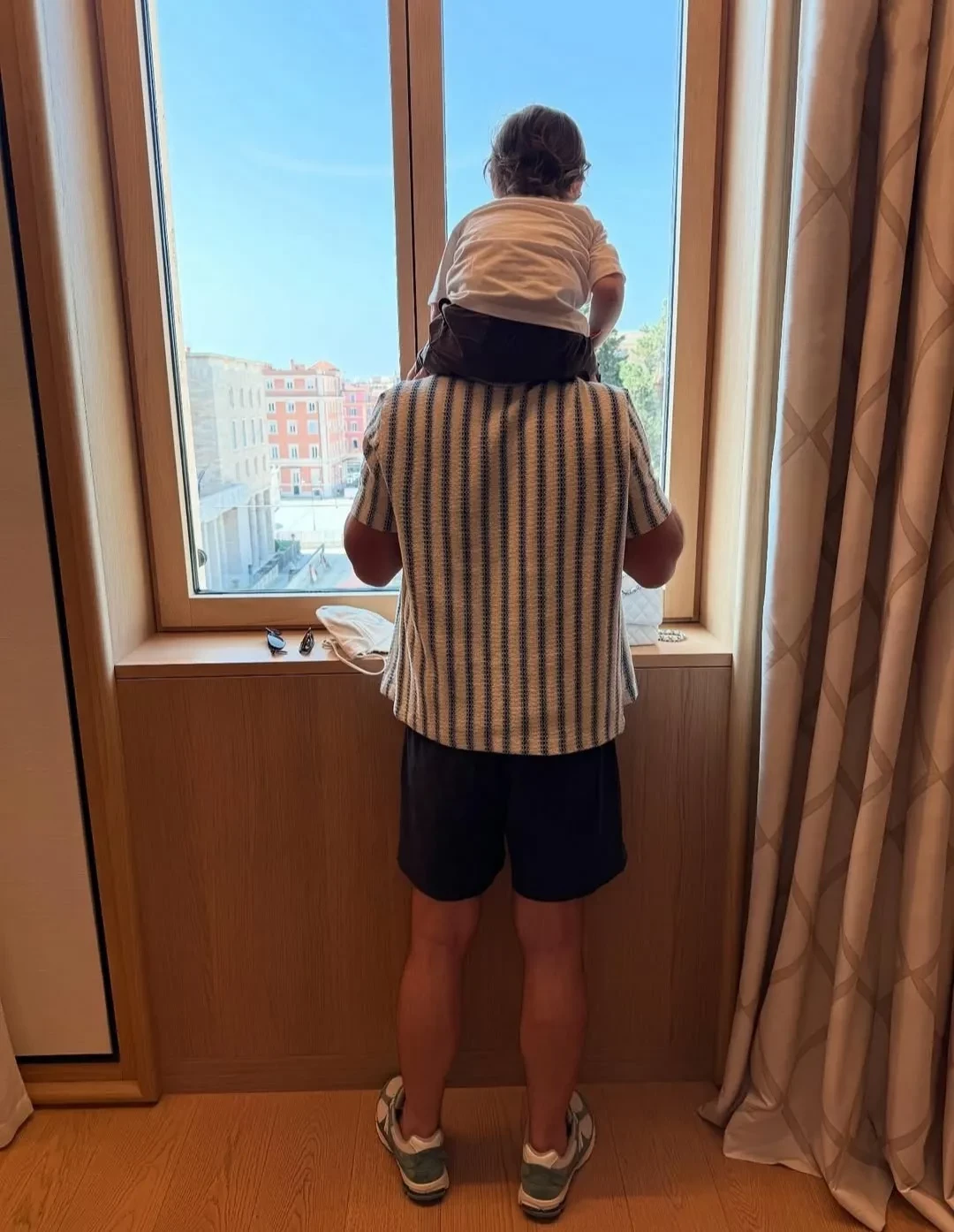 ЛуайНа кадрах можно увидеть маленького Луая (в июле ему исполнится два года), играющего в мяч и сидящего на плечах у своего отца.