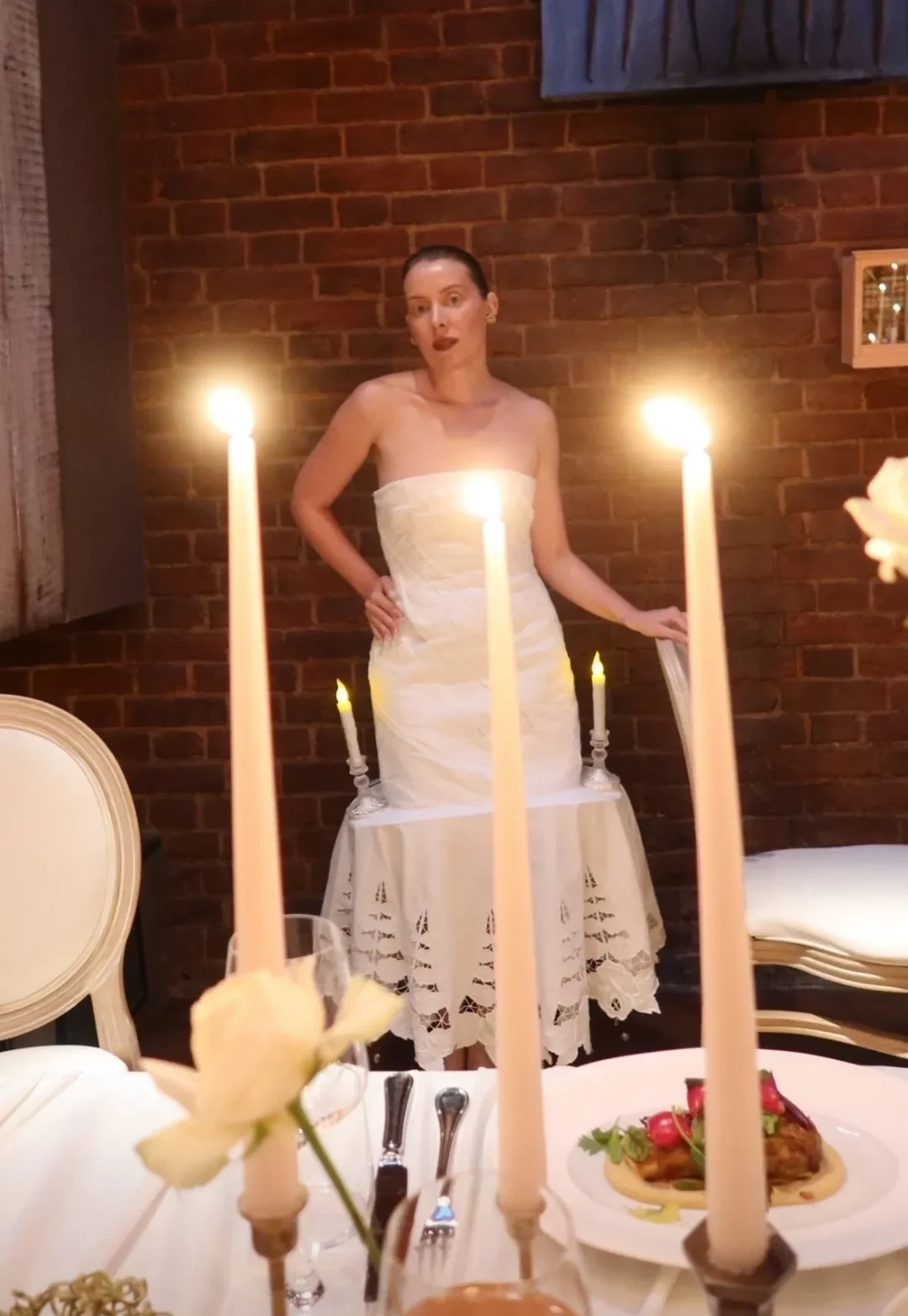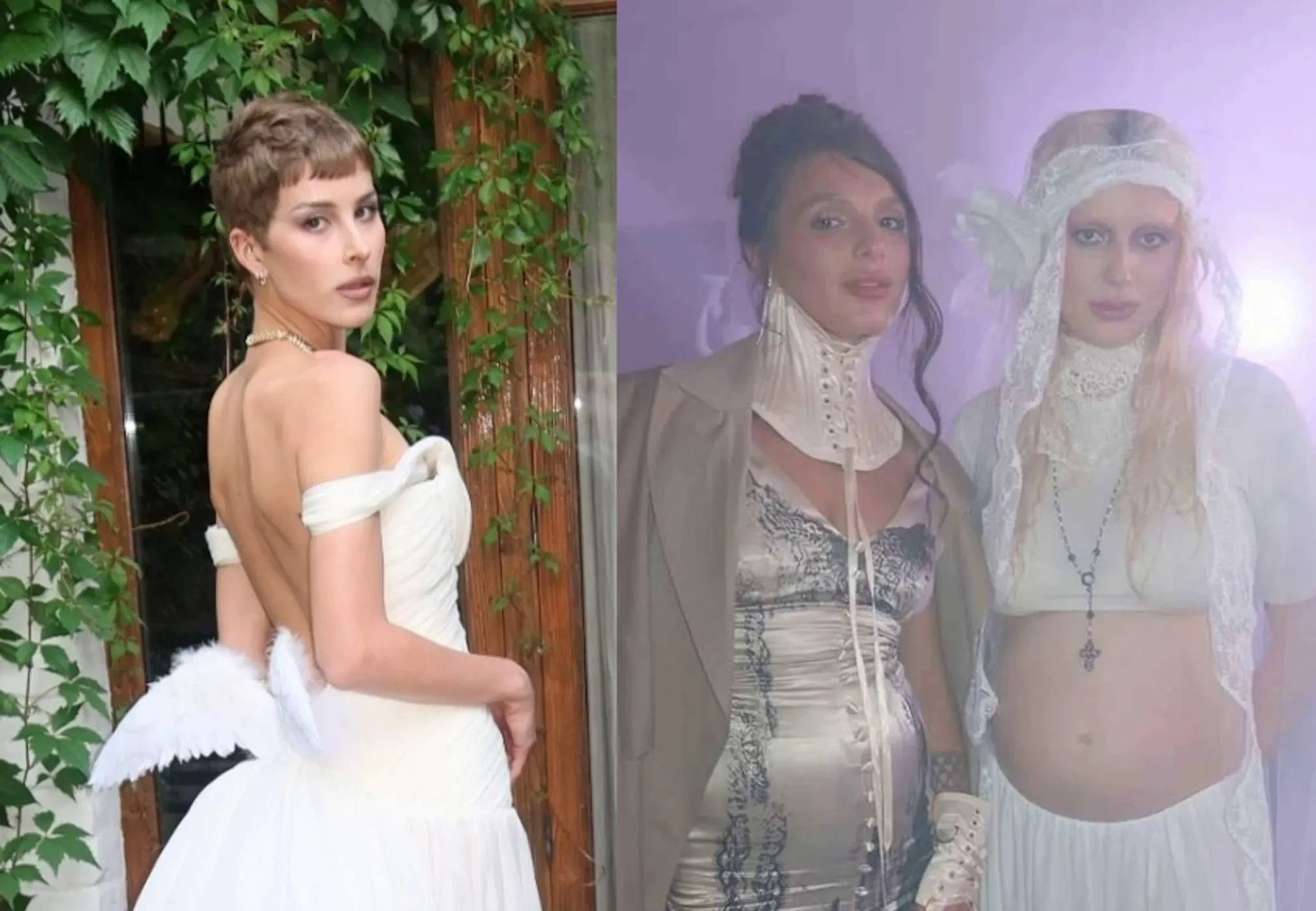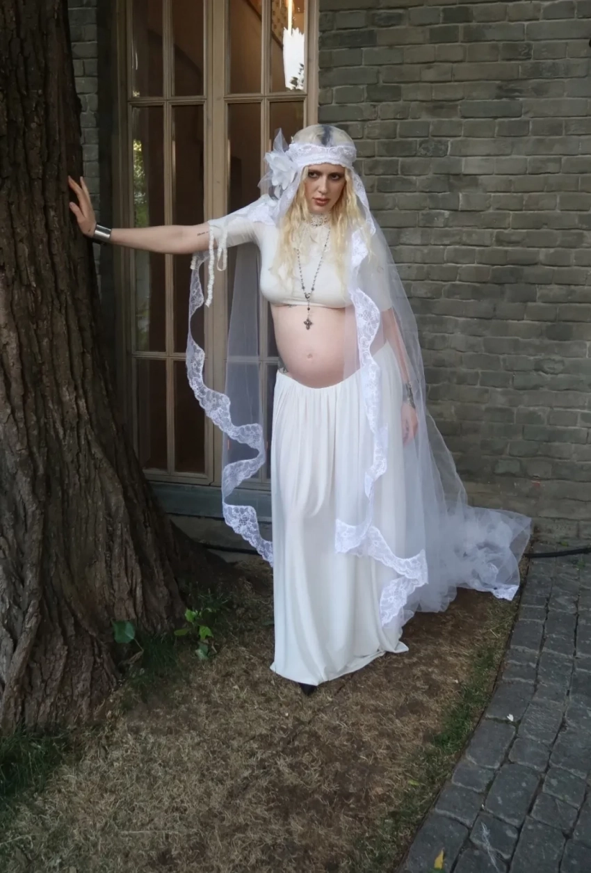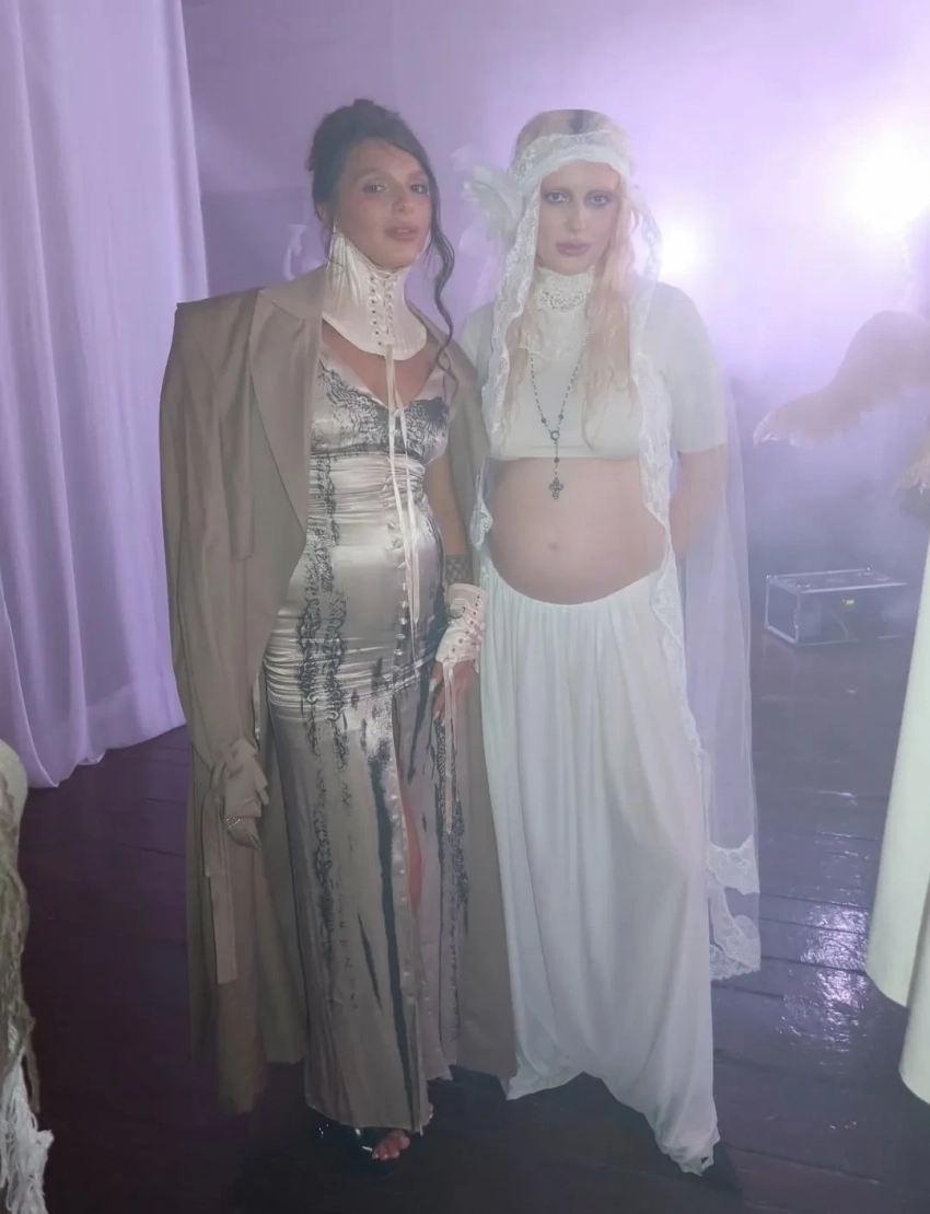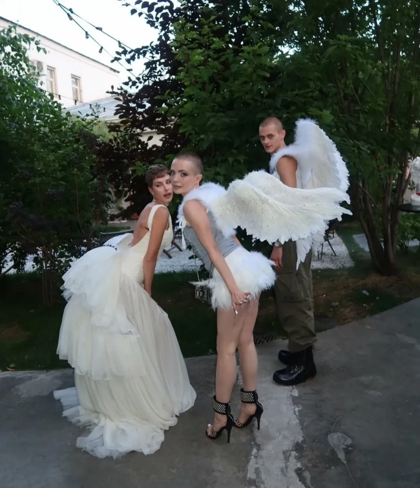 https://t.me/spletnik2006/34156Все гости были одеты соответственно дресс-коду вечера, темой которого были "Ангелы Ренессанса". Повсюду можно было увидеть белые платья с рюшами и кружевами, накладные крылья, корсеты и перья. Даже питомцев их хозяева нарядили в белое. Что касается именинницы, что она выбрала для вечера платье Ильи Migmoon, стилизованное Ксюшей Смо.