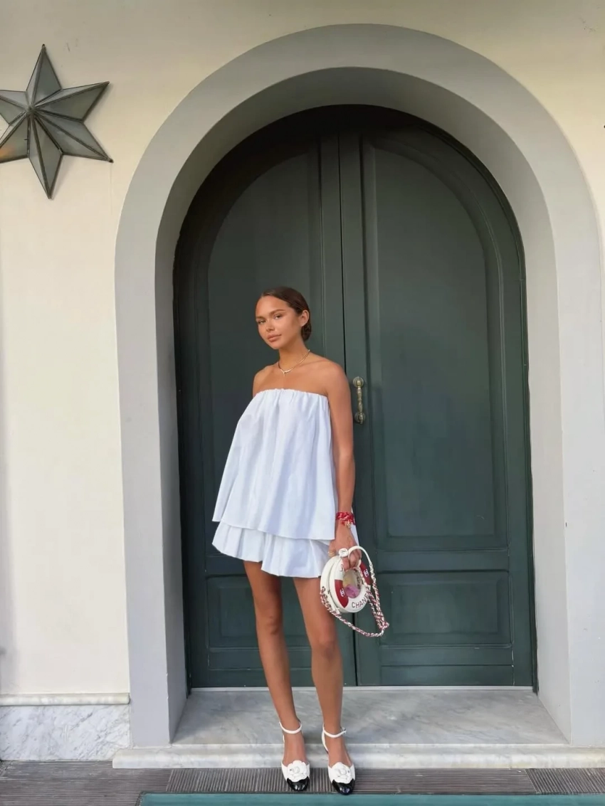 "Хорошо у нас в деревне летом. Пока паста идёт в сторис*, а не в бока — можно жить красиво", — подписала снимки Маликова, на которых она позирует в белом платье, туфлях и с сумкой Chanel.