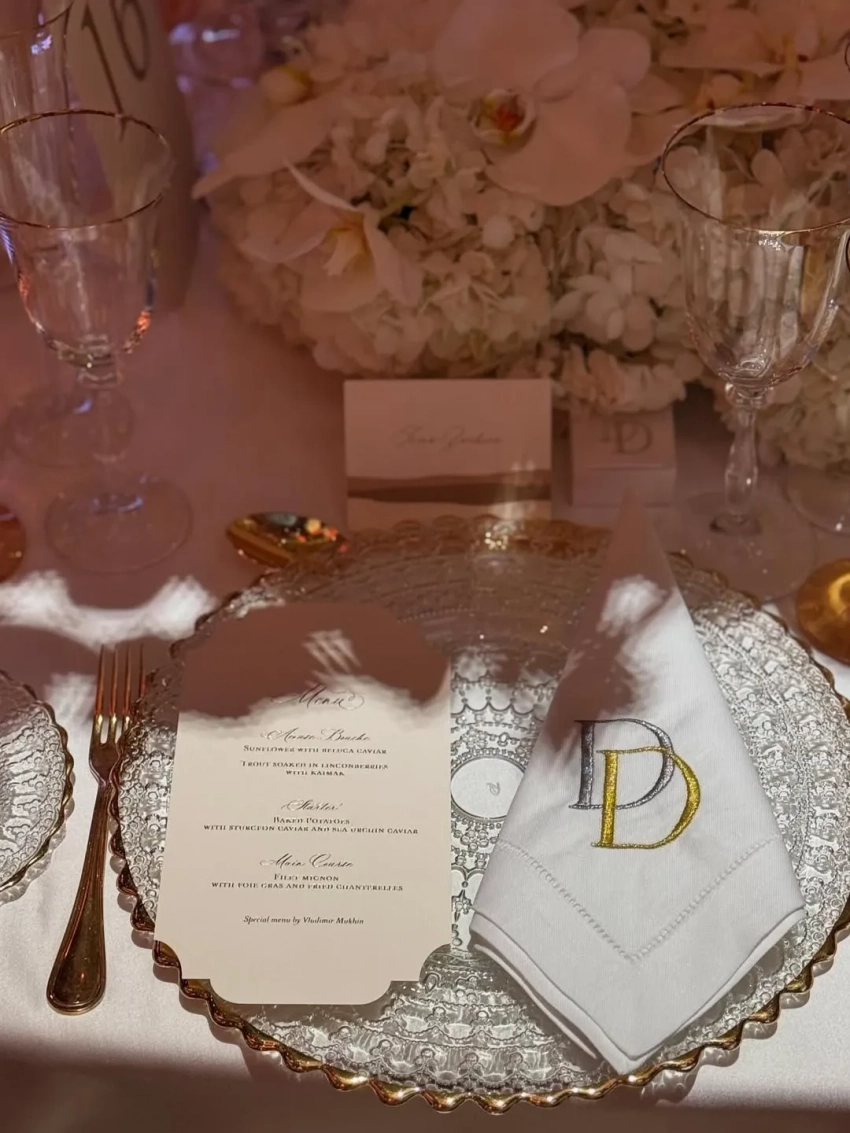 Свадьба Дины, консультанта по топ-камням, и её возлюбленного Дана, успешного бизнесмена из Швейцарии, как и у Безосов, продлилась три дня. И организацию торжества доверили тому же агентству, которое занималось грандиозной свадьбой Джеффа и Лорен. Для молодожёнов и гостей даже был забронирован тот же отель, где останавливались Безосы, Aman Venice, принадлежащий российскому миллиардеру Владиславу Доронину. Его забронировали за два года до свадьбы.