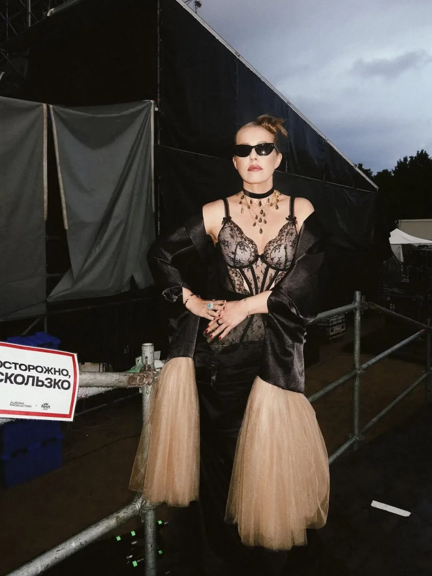 Русский кутюр и последний день перед декретом: как Ксения Собчак и Ида Галич провели время на VK Fest